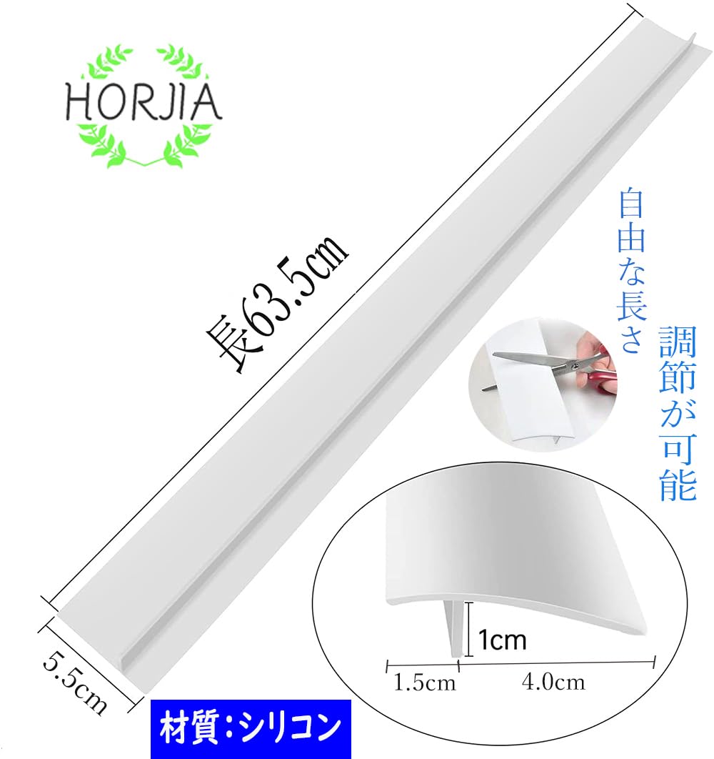 【商品規格】T型間隙保護シリコン防水ストリップ。内容:2本入りセット、サイズ:長さ63*幅5.5*縦1cm、材質:シリコン、重量:約105 g(1本)。特徴:ソフト接着剤の設置不要簡単 ,材質にシリコン製ギャップカバー を使用し、取り外し可能なので、汚れが気になったらさっと水洗いできます。