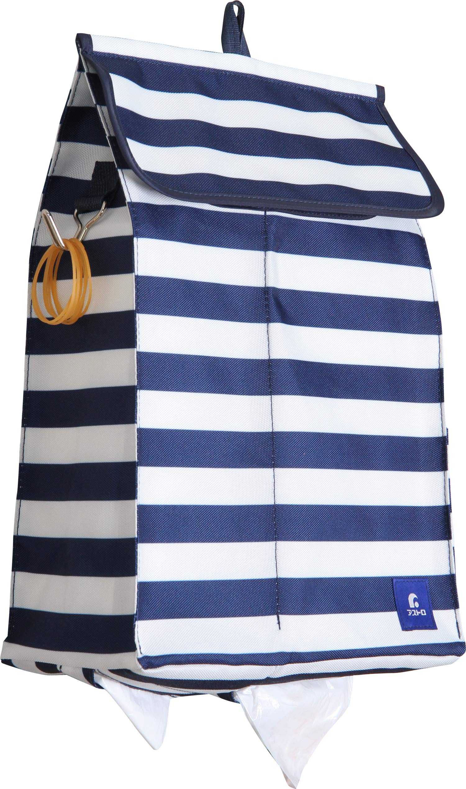 アストロ レジ袋ストッカー ネイビー ボーダー柄 吊り下げ 壁掛け ポリ袋収納 仕切り入り 大・小仕分け 省スペース 821-38