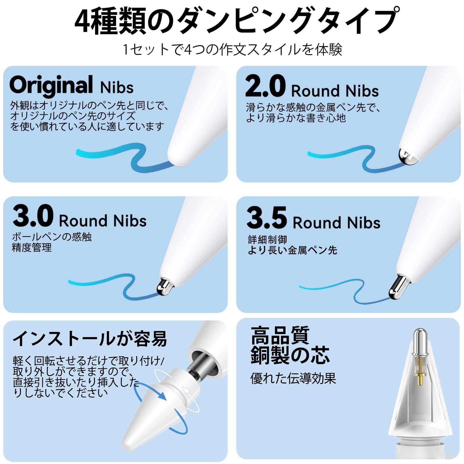 【互換性】Inesoreアップグレード版iPad Pro Apple Pencilチップ。Apple Pencil第1世代/Apple Pencil第2世代/Logitech Crayonデジタルペンに適用され、4種類のサイズのiPad Pro 11インチ、9.7インチ、10.5インチ、12.9インチ(各2本)があります(注意:Apple製ではありません)