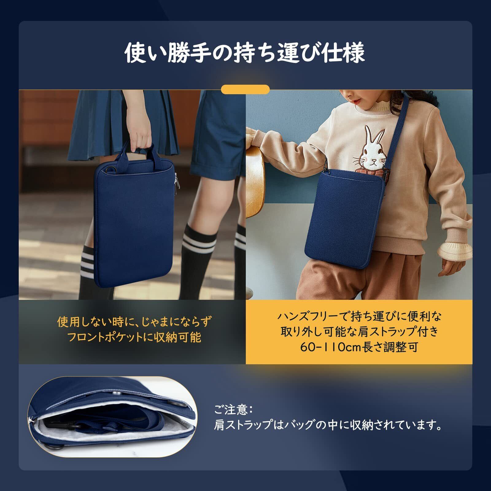 [ATiC] タブレットバッグ 小学生 9-11インチ タブレットケース ランドセル 小学校 ノートパソコン収納バッグ PCインナーバッグ iPad Air/Pro 11インチ/iPad 11世代/iPad 10世代/iPad 10.2/iPad Air 5&4/Fire HD10 11インチなど対応 ノートパソコン/タブレット/電子書籍リーダー ネオプレン製 大容量収納 手提仕様 Indigo