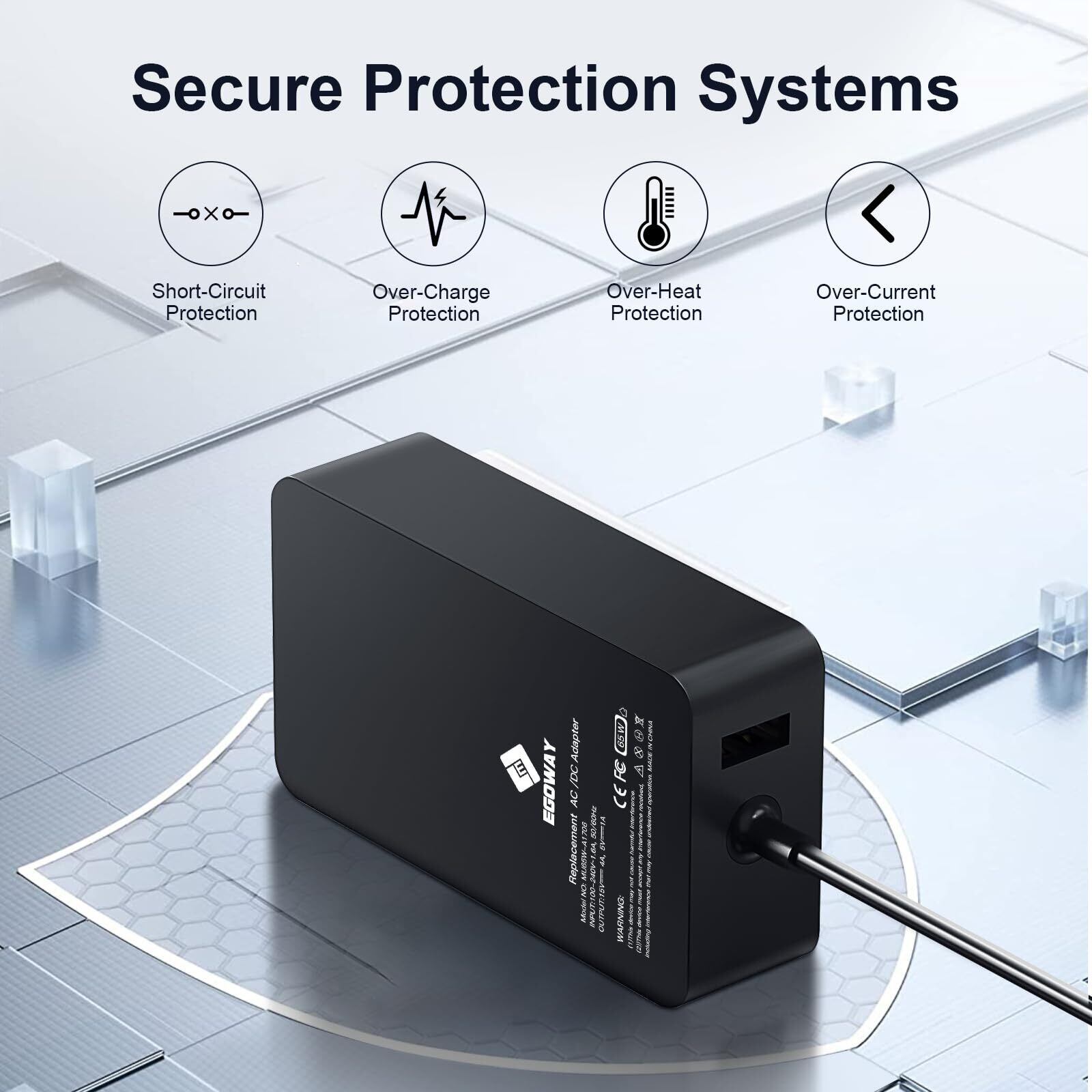 E EGOWAY Surface Pro 充電器 65W Microsoft Surface 5V 4A AC電源アダプター 充電器 充電ケーブル 互換性 Surface Pro X 7 6 5 4 3 Surface Laptop 3 2 1 Surface Book Surface Go に対応 ウォールプラグと1.8m(6フィート)の電源コードが付属 PSE認証