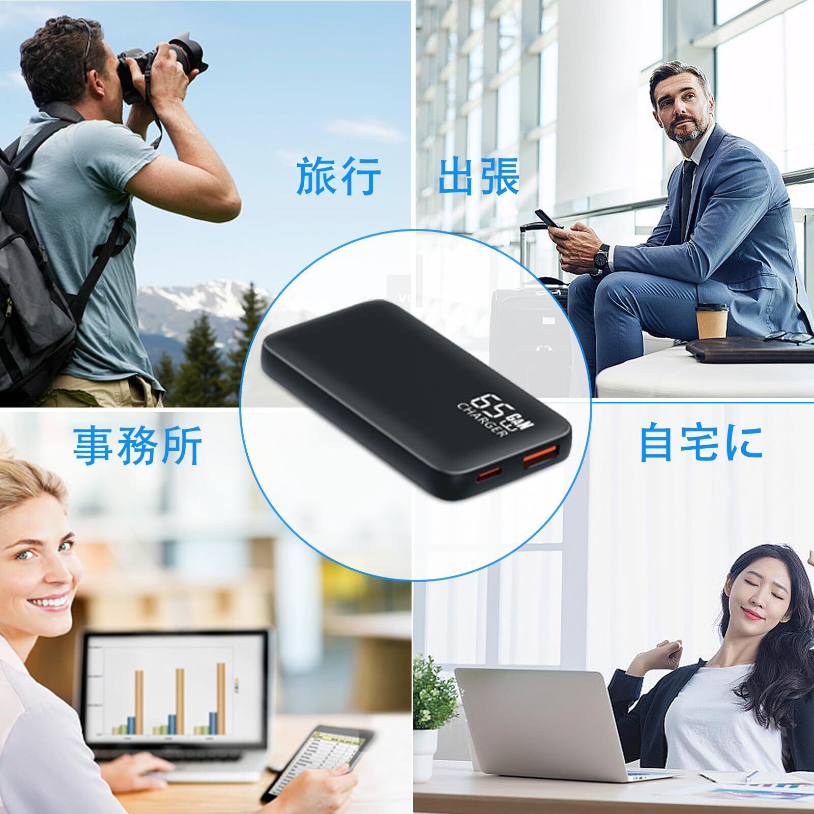 【PD/PPS/QC急速充電】BC1.2、DCP、QC2.0、QC3.0、QC4+、AFC、FCP、PD2.0、PD3.0、PPS、SCP様々な急速充電技術をサポートします。単一ポート充電するとUSB-CポートMAX 65WとUSB-AポートMAX 18Wが実現します、2ポート同時に充電すると45W+18Wが達します。Surface Proは約1時間、iPhone 15約1時間で充電完了。超高速充電、効率的で貴方の時間を節約します。