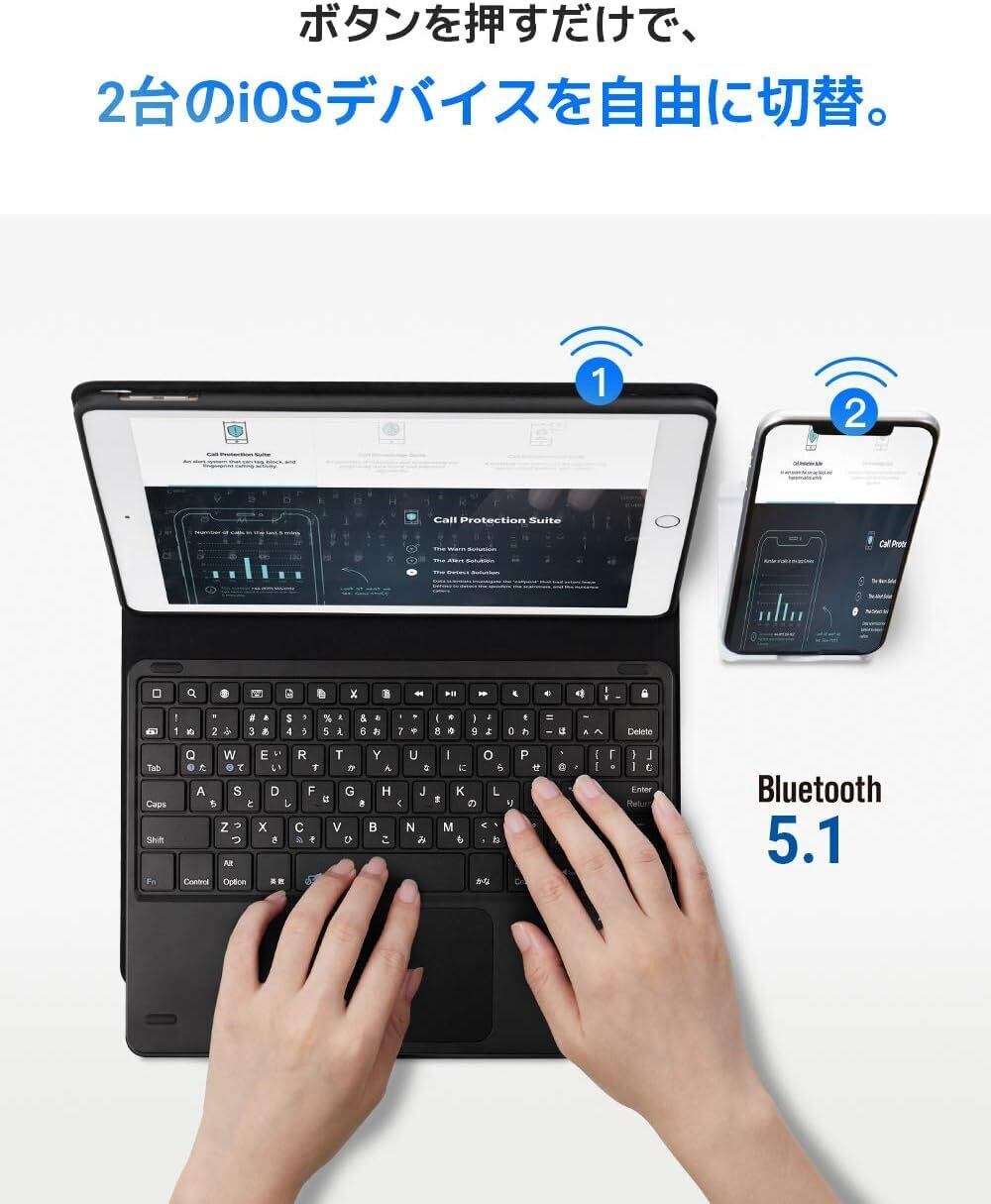 【JIS日本語配列&タッチパッド搭載】 〈ご注意:iOSのiPad/iPhone用キーボードですが、よくご確認頂いた後ご購入ください。〉キーボードはJIS日本語配列レイアウトを採用し、音量調整やメディアプレーヤーの操作などのマルチメディアキーを搭載しています。Bluetooth 5.1 キーボードはタッチパッド搭載、パンタグラフキータイプ、快適に操作することが可能になります。タッチパッドは必要ない時、ロックされることができます。