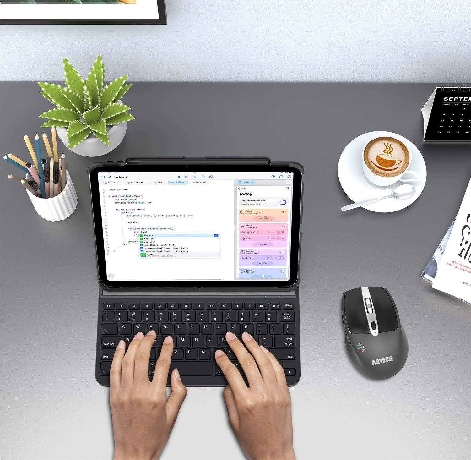 Arteck iPad Air 11インチケース(M3/M2、2025/2024)、iPad Air 第5世代、第4世代専用カバー、Bluetoothキーボード フォリオ保護ケース