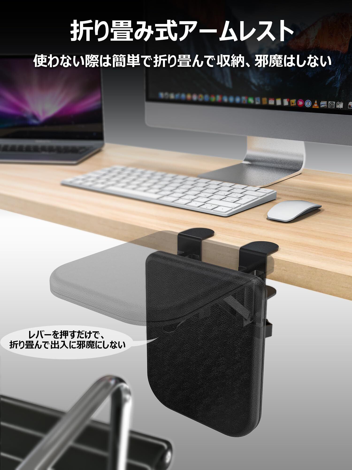 アームレスト 革製 柔らかい リストレスト折り畳み式 肘置き デスク拡張 デスク延長 デスクエクステンダー 人間工学に基づき 穴あけ不要 手置き 肘掛け 防汚・防水 (ブラック, 200mm)