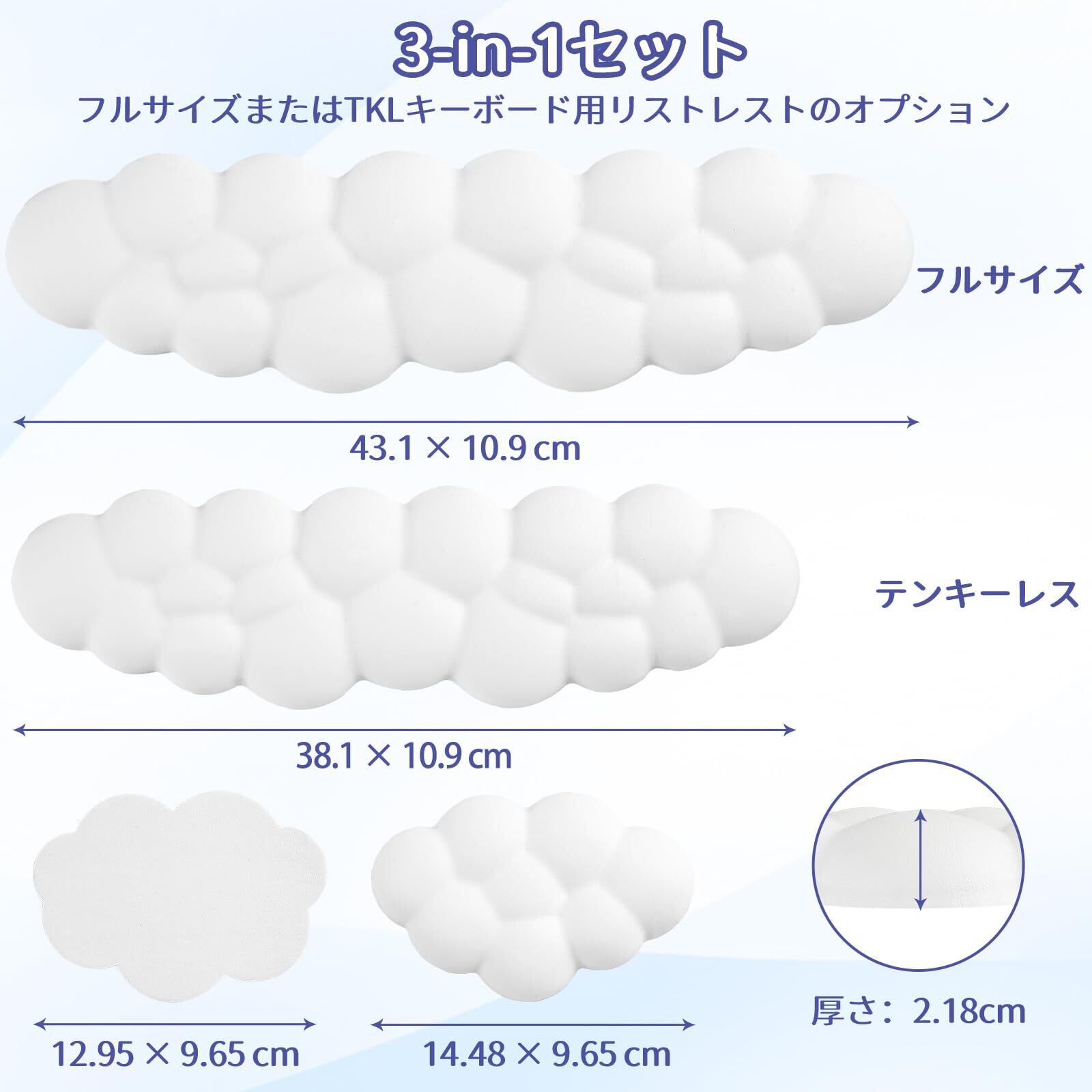 Sushret リストレスト 雲、PUレザーメモリーフォーム付きクラウド パームレストセット、手首のサポートとアームレストのためのかわいいリストレストキーボード、PC/ゲーム/ハンドクッション/コンピューター用のデスククラウド リストパッド (白)