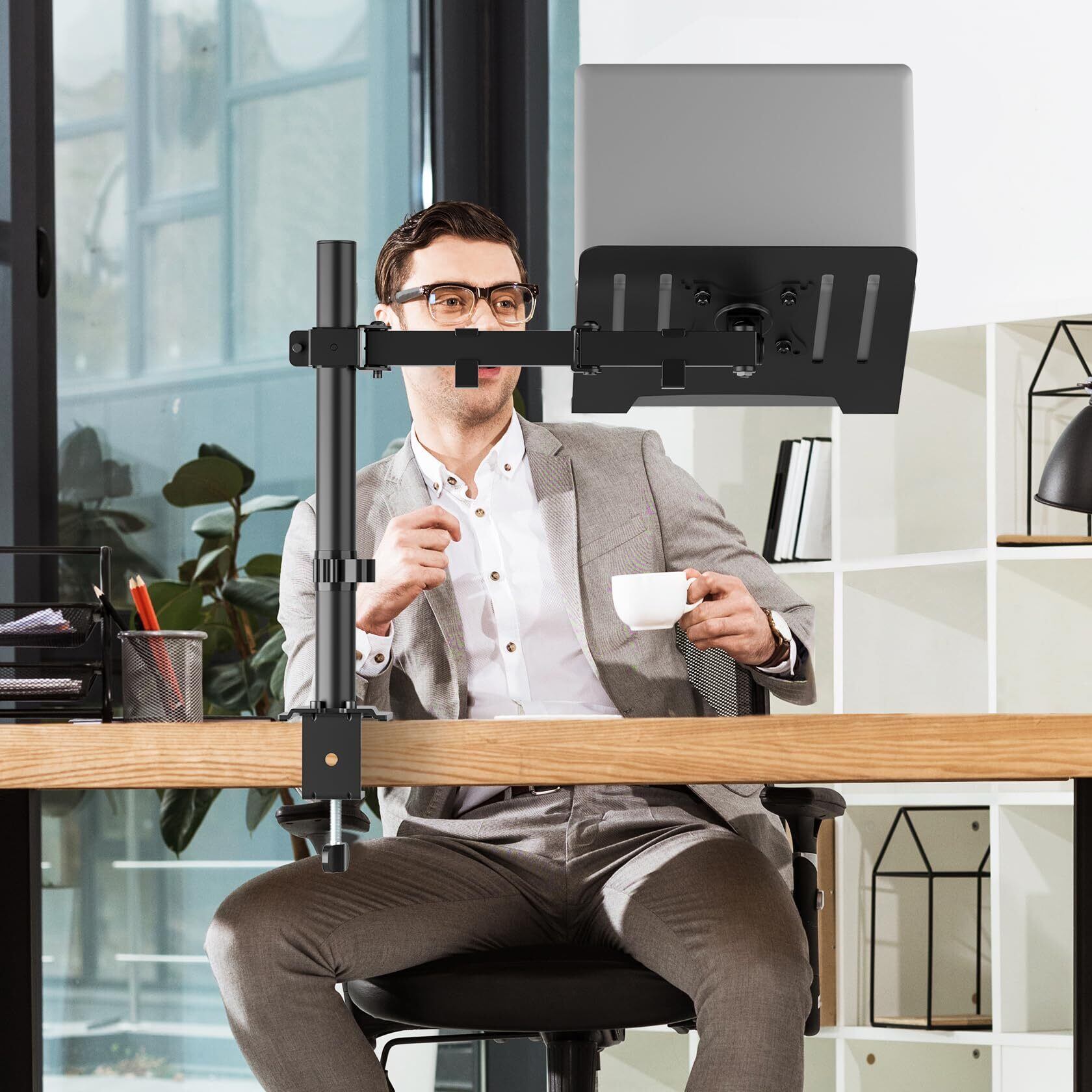 革新なデザイン:ディスプレイとノートパソコンをお好みに合わせて取り付けることができます。人間工学に基づいたデザインで、仕事の疲れを緩和するだけでなく、省スペースしてデスク周りがスッキリします。