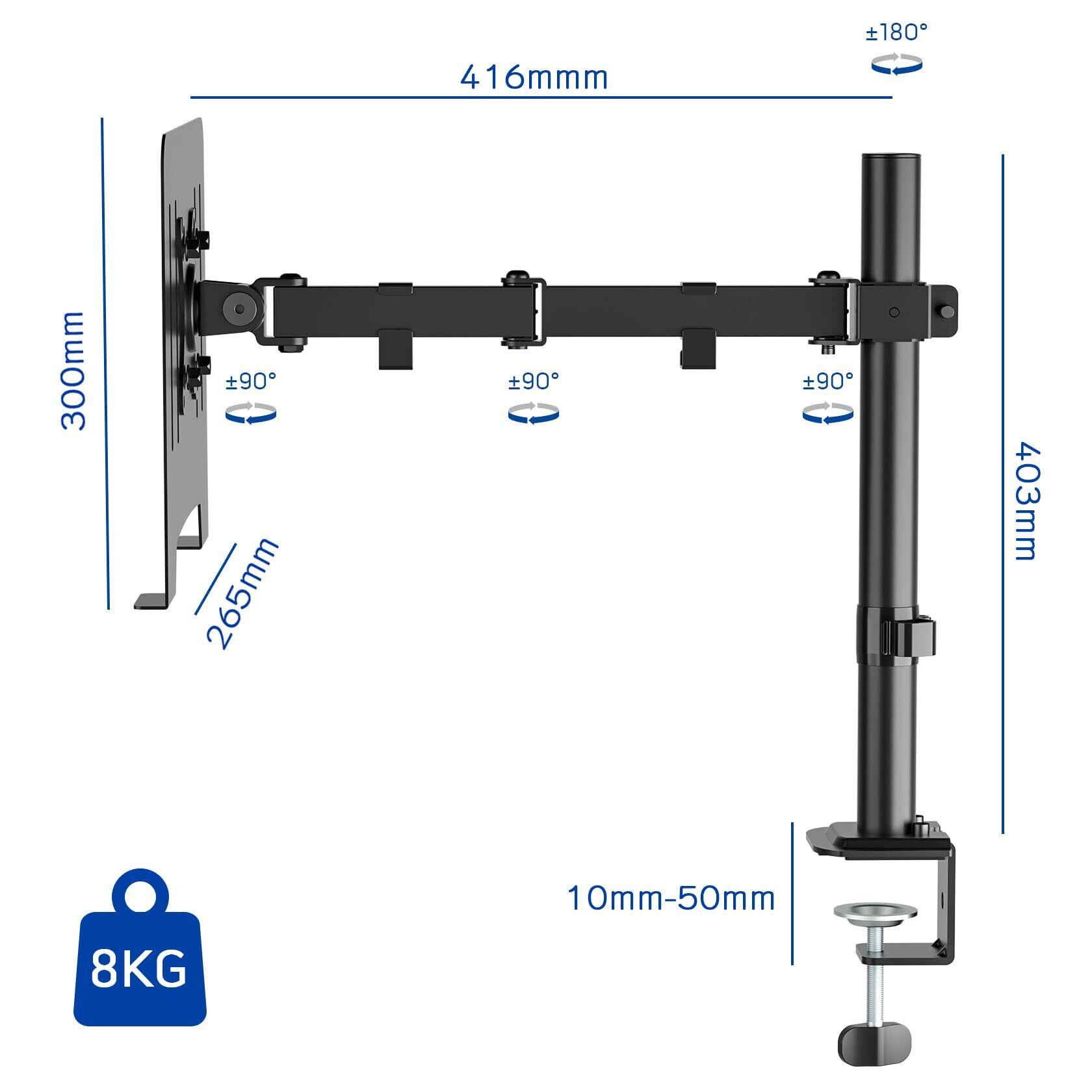 多角度調節:モニターは上向き90°、下向き90°、左右180°、回転360°に調節し、モニターアームは上下左右だけなく、前後にも動作し、画面との距離が調整可能です。モニターの縦横切り替えが簡単に行えます。