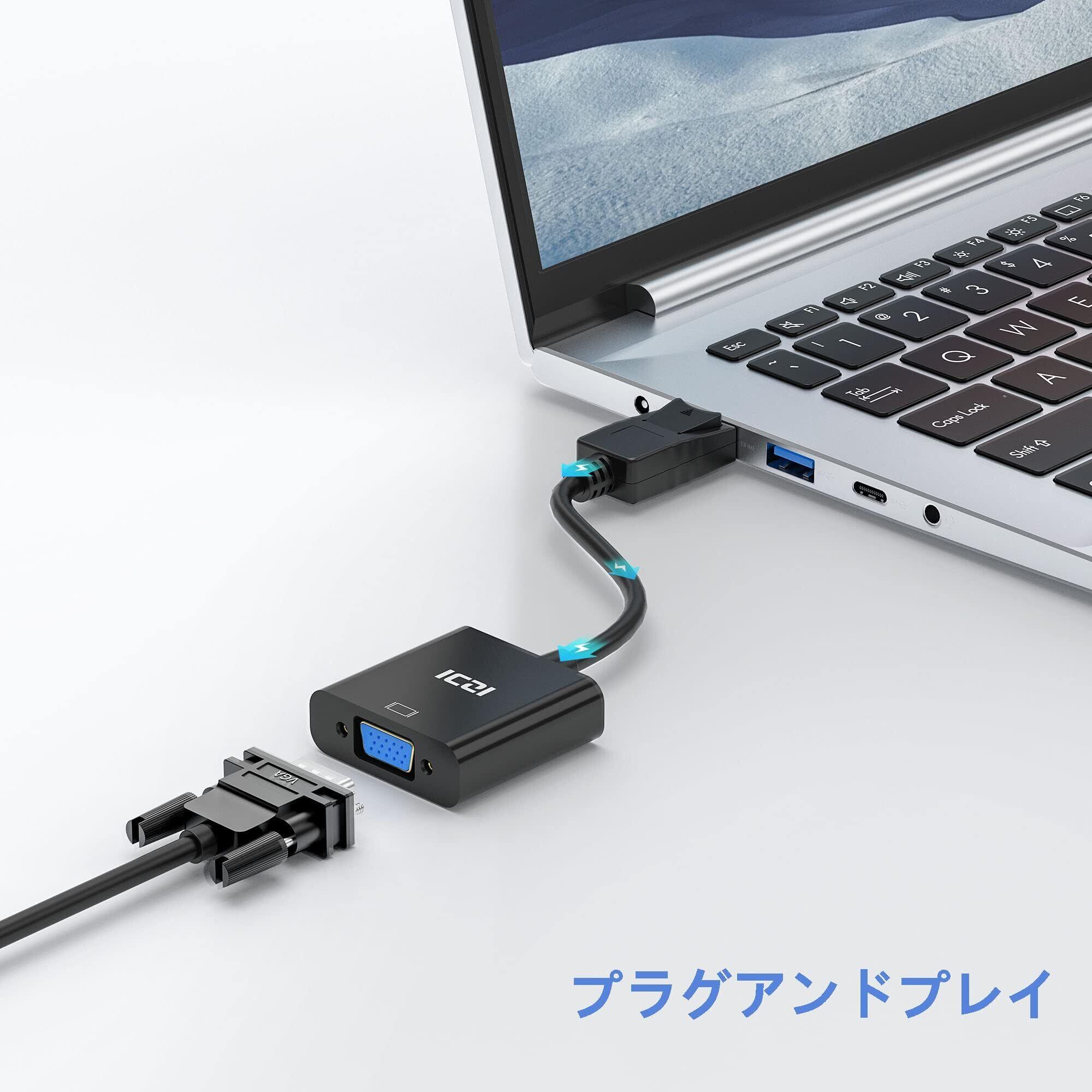 ICZI Displayport VGA変換アダプタ ディスプレイポート VGA 変換アダプタ 最大解像度 1920×1080サポート MacBook Pro Microsoft Surface Pro/Pro 2/Pro 3 Lenovo ThinkPad Google Chromebook PCなど対応dp vga 変換