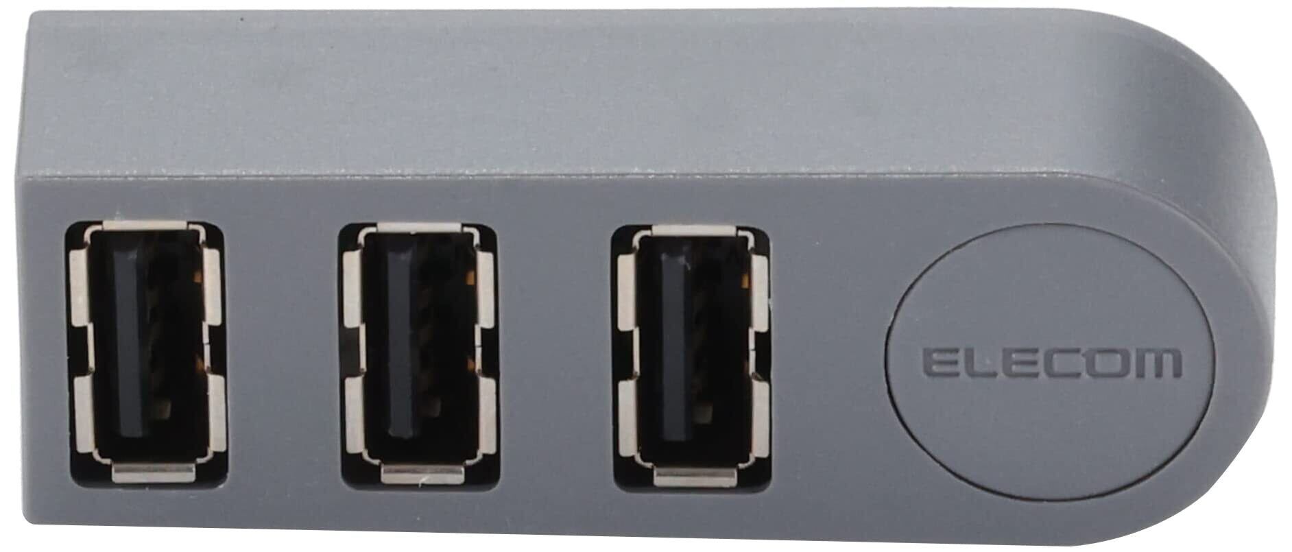 エレコム USBハブ U2H-TZ325BGY/EC USB2.0 Aポート×3 機能主義 直挿し グレー MacBook/Surface/Chromebook他 ノートPC対応