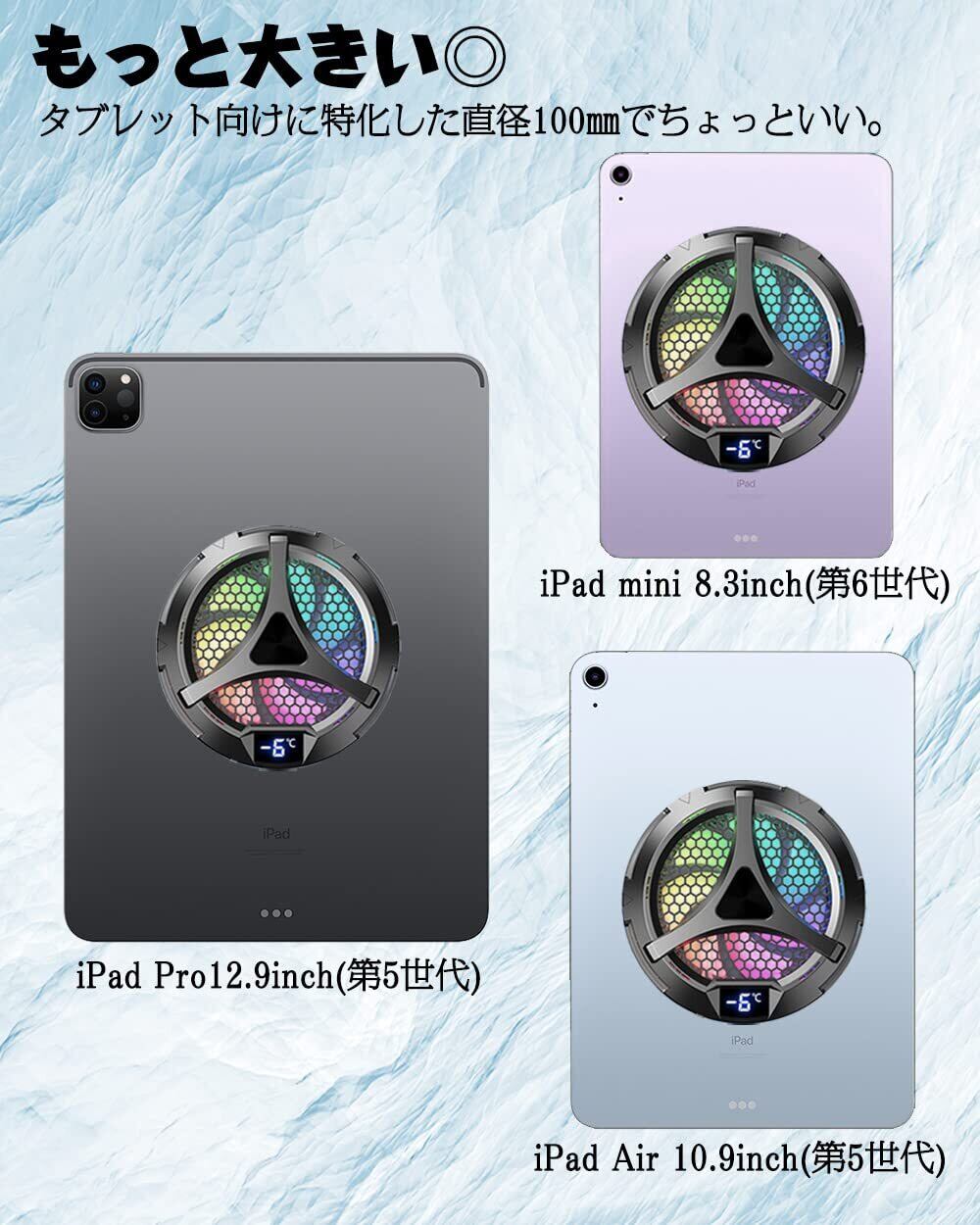MTS X42Pro タブレット 冷却ファン ペルチェ素子 iPadクーラー 20W高出力 50㎠冷却面積 2段パワー調整 マグネット 温度表示 120フレームレート安定 iPad/タブレット対応