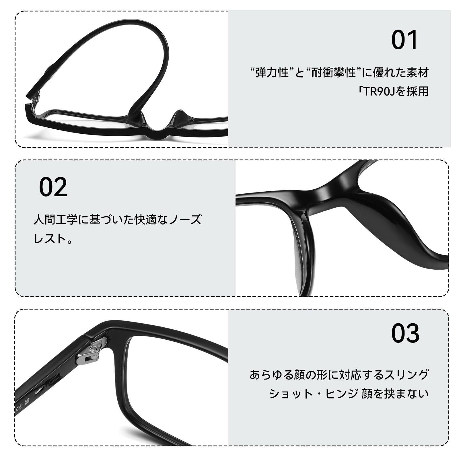 【高品質素材】高品質のブルーライト対策レンズを採用し、可視光線透過率は高く、色収差が低い。フレームはTR-90素材でできており、かけないほど軽さは快適な掛け心地をもたらします。日本人に合わせてデザインは、どんな顔幅にもお似合いです。