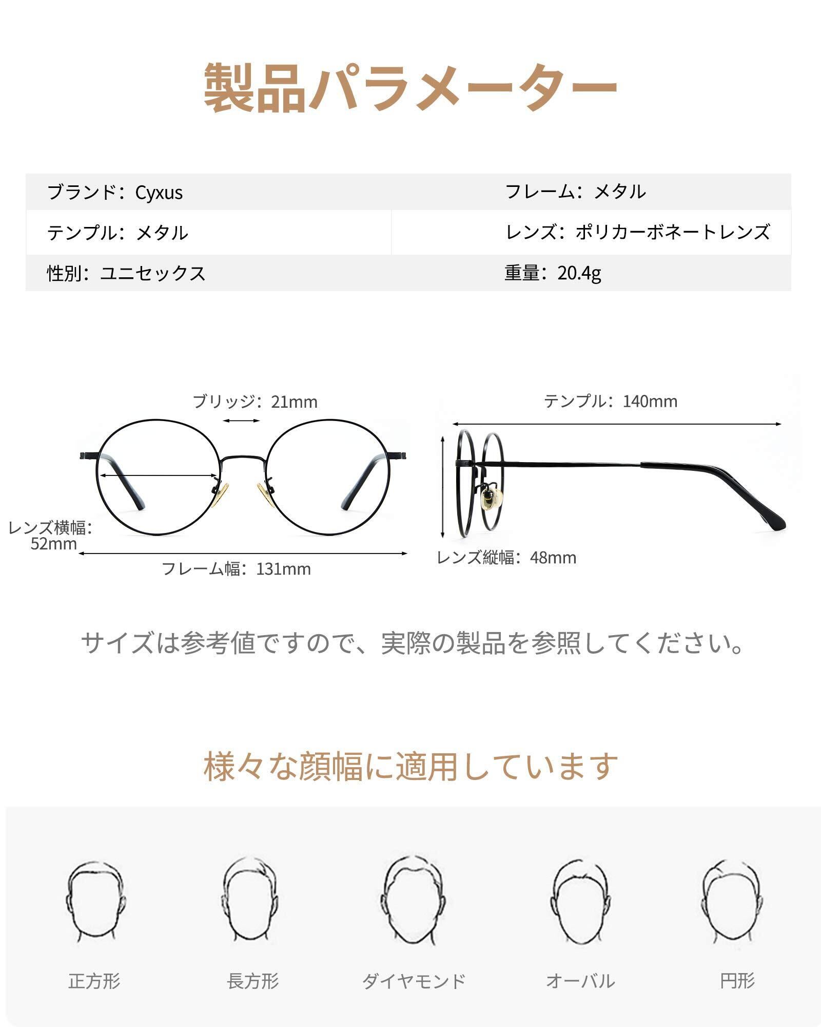 [Cyxus] シクサズ ブルーライトカットメガネ 度なし 透明レンズ PCメガネ 輻射防止 ファッション眼鏡 ステンレス お洒落 男女兼用
