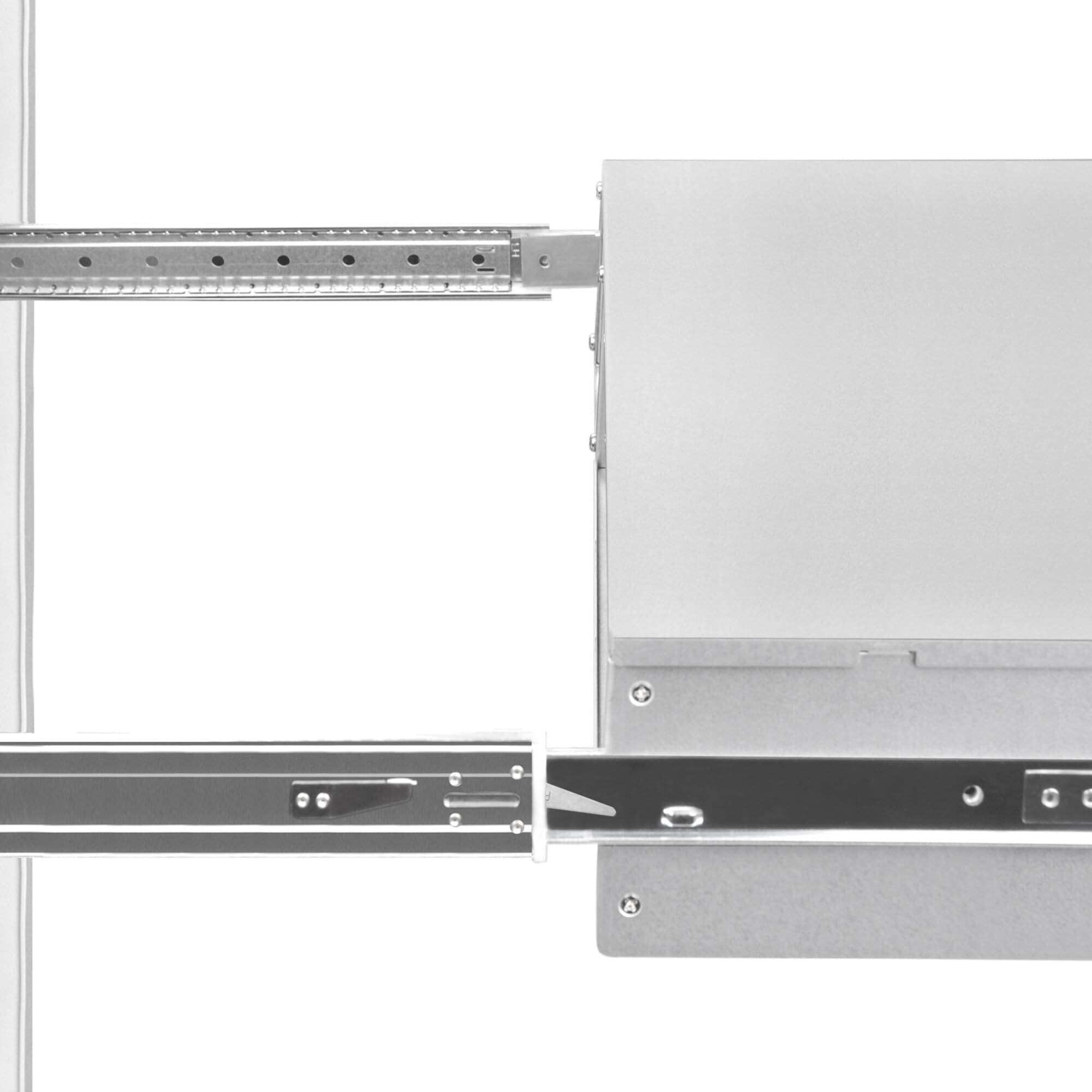 RMS03-26は、SilverStone製RMシリーズケースをサーバーラックキャビネットに装着可能にすべく設計されました。高精度のマウント穴および高張力スチール構造の当製品は、ケースおよびサーバーラックキャビネット間の、安全で便利な連結を実現します。工具不要設計に加え、より安全な設置としてネジ固定も付属しています。