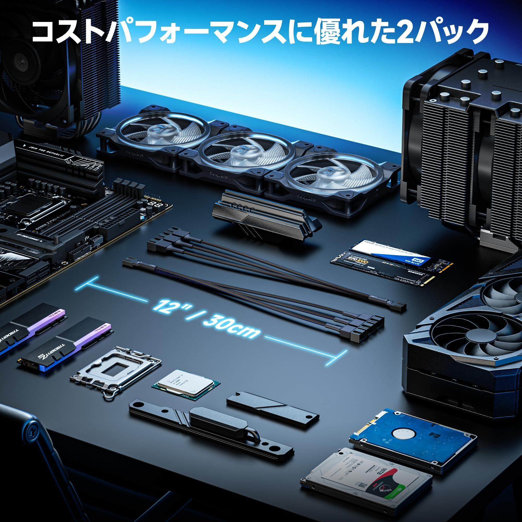 【対応機器】本3ピン& 4ピンPWMファン用延長ケーブルは人気なパソコン用冷却ファンに対応:3-Corsair Air Series AF120 80mm / Series AF140 High Airflow、Cooler Master Blade Master 80 / Master 92、Cooler Master Hyper 212 EVO 120mm、Cooler Master JetFlo 120mm、Cooler Master SickleFlow 120mm、Cooler Master MegaFlow 200mm、Noctua NF-F12、Thermaltake WATER 3.0 Dual 240