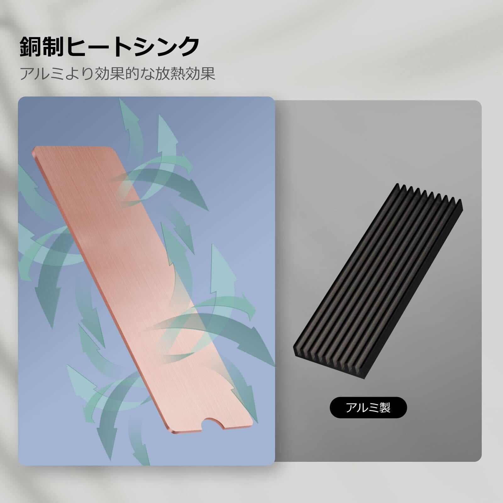 【高品質銅】100%銅材質、厚さ1mmコンパクトな銅板ですが、アルミ制よりよい放熱効果を持ちますので、高性能SSDの熱暴走としてよい対策。