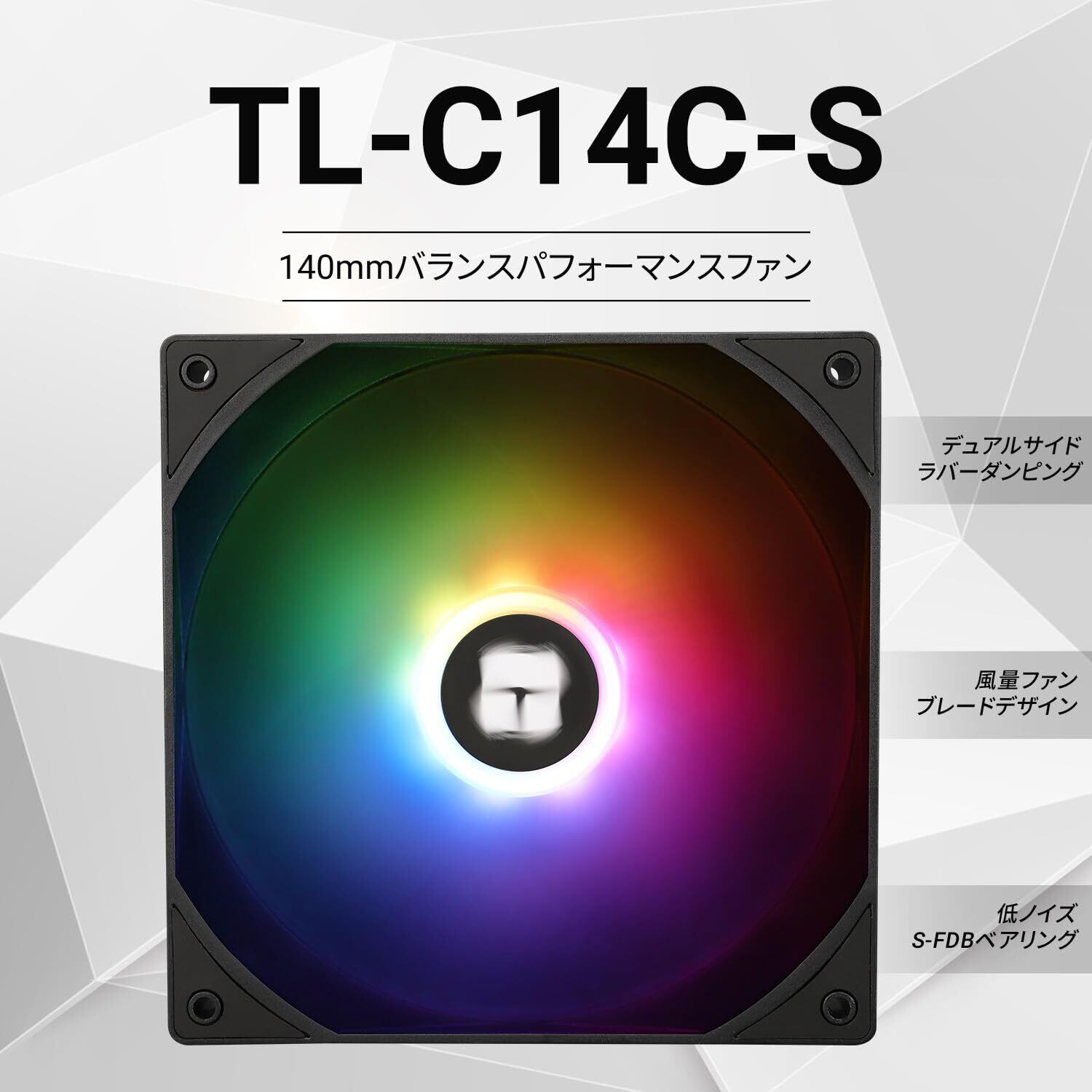 Thermalright TL-C14C-S ケースファン高性能クーラーファン 1500RPM、 S-FDB ベアリング付き 4 ピン PWM 冷却ファン(140mm, ARGB)
