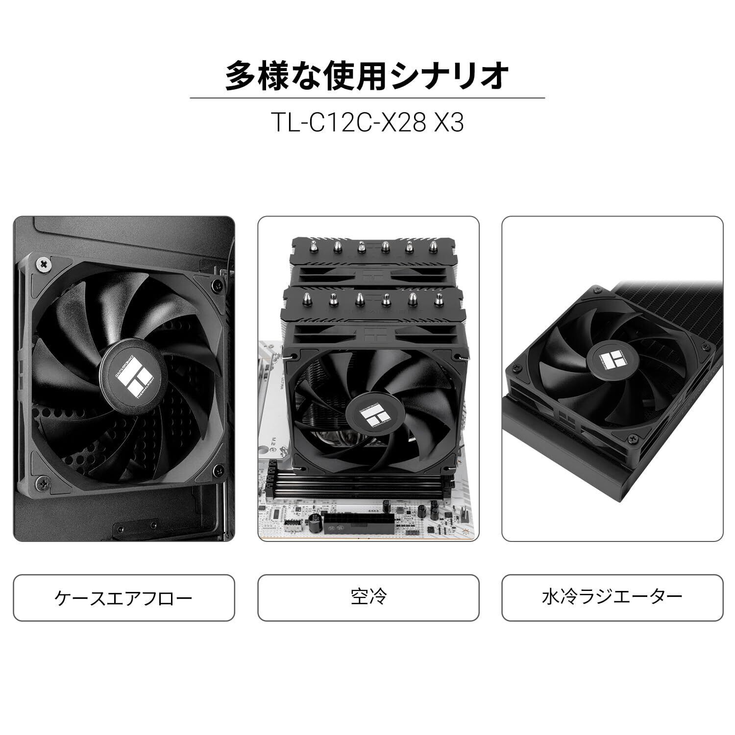 Thermalright TL-C12C-X28 X3 CPUファン、ブラック冷却ファン、1550RPM速度のPCファン、120mmコンピューターケースクーラーファン、ケースおよび液体クーラーおよびCPU冷却用PWM制御ファン、厚さ28mm(3つのファンを含む)