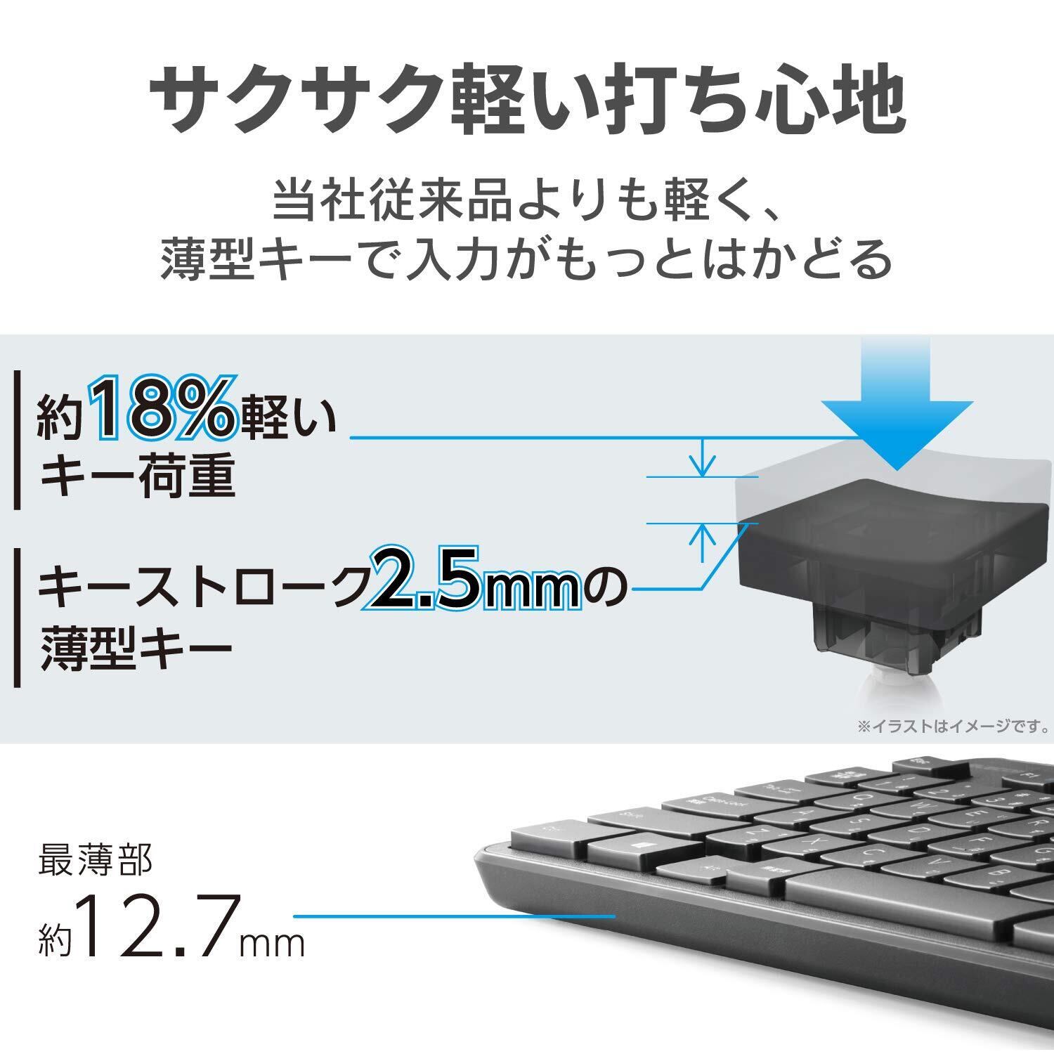 サクサクと軽い打ち心地を実現したキー設計を採用した薄型キーボードです。