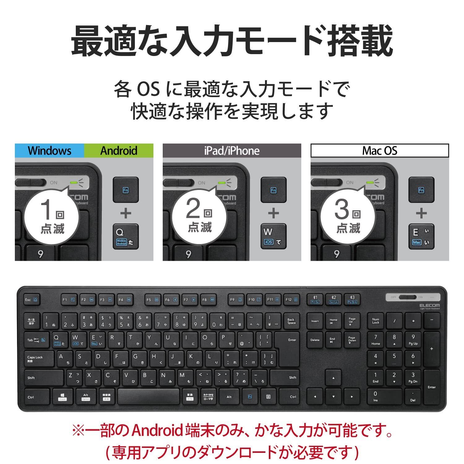 ■ Android端末で、キーボードの印字通りのキー入力ができるエレコム独自のアプリ「ELECOM Keyboard layout」に対応しています。※Android4.0以降専用です。