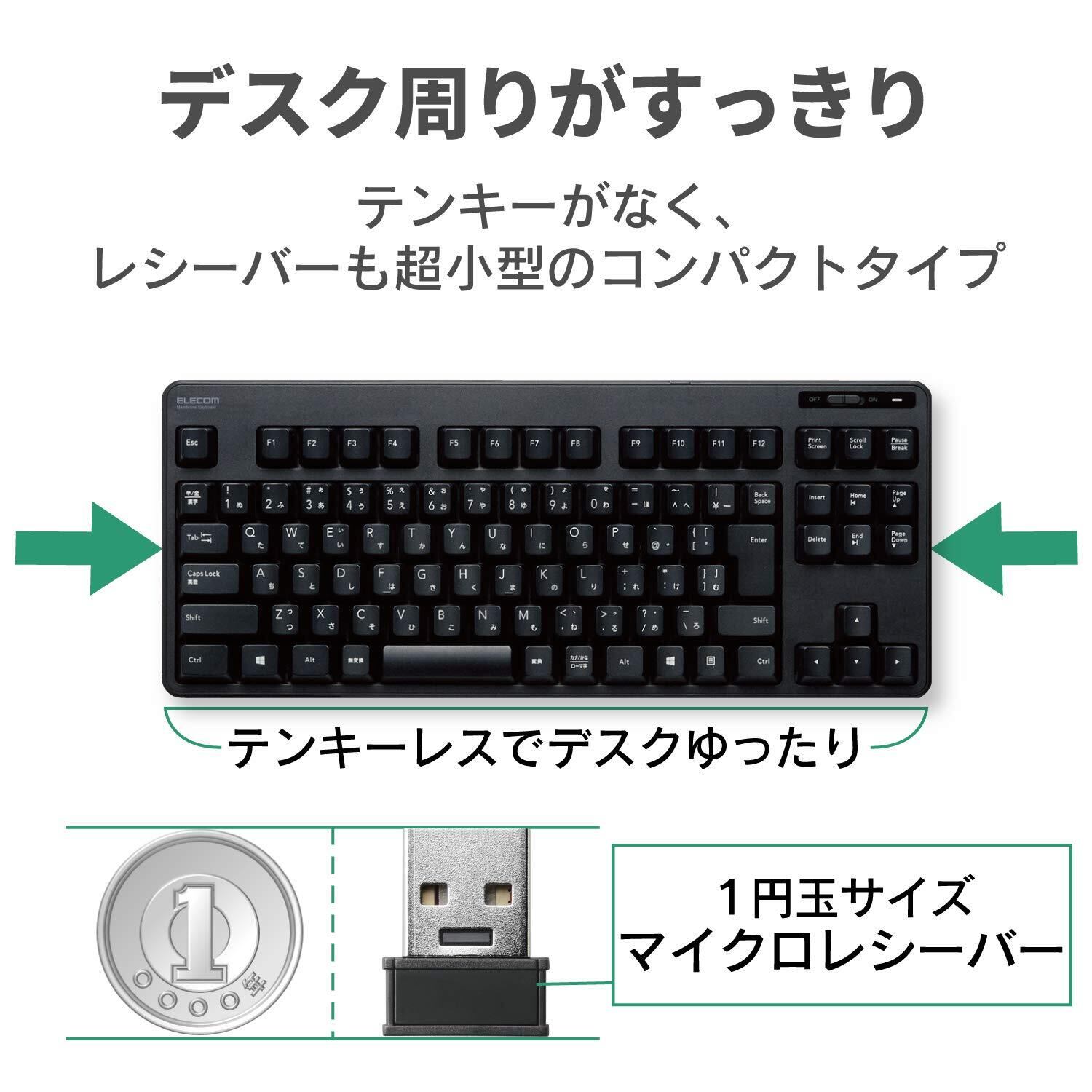 エレコム USB キーボード ワイヤレス (レシーバー付属) メンブレン コンパクトキーボード ブラック TK-FDM105TXBK