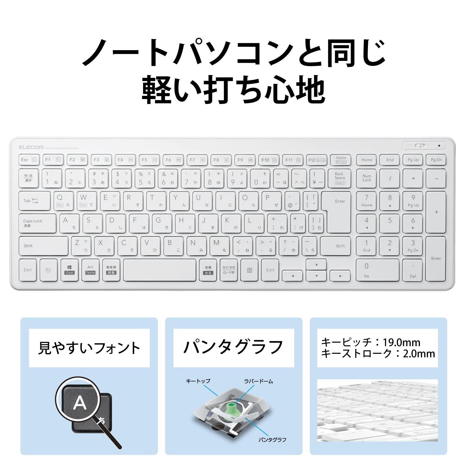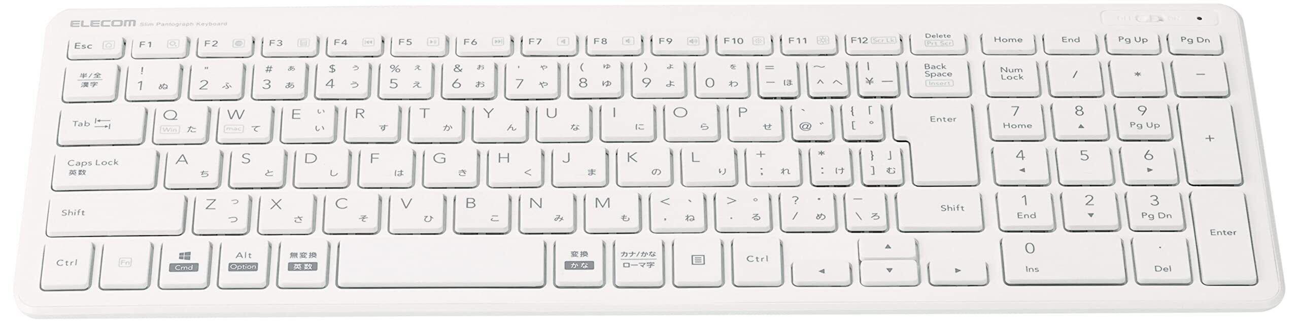 エレコム USB-A キーボード ワイヤレス (レシーバー付属) パンタグラフ コンパクトキーボード ホワイト TK-FDP099TWH