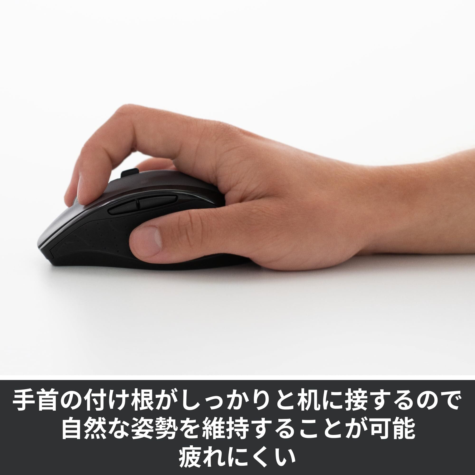 手と指を自然な状態で置いて自然な姿勢を維持/腕や肩が疲れにくい高機能ワイヤレスマウス