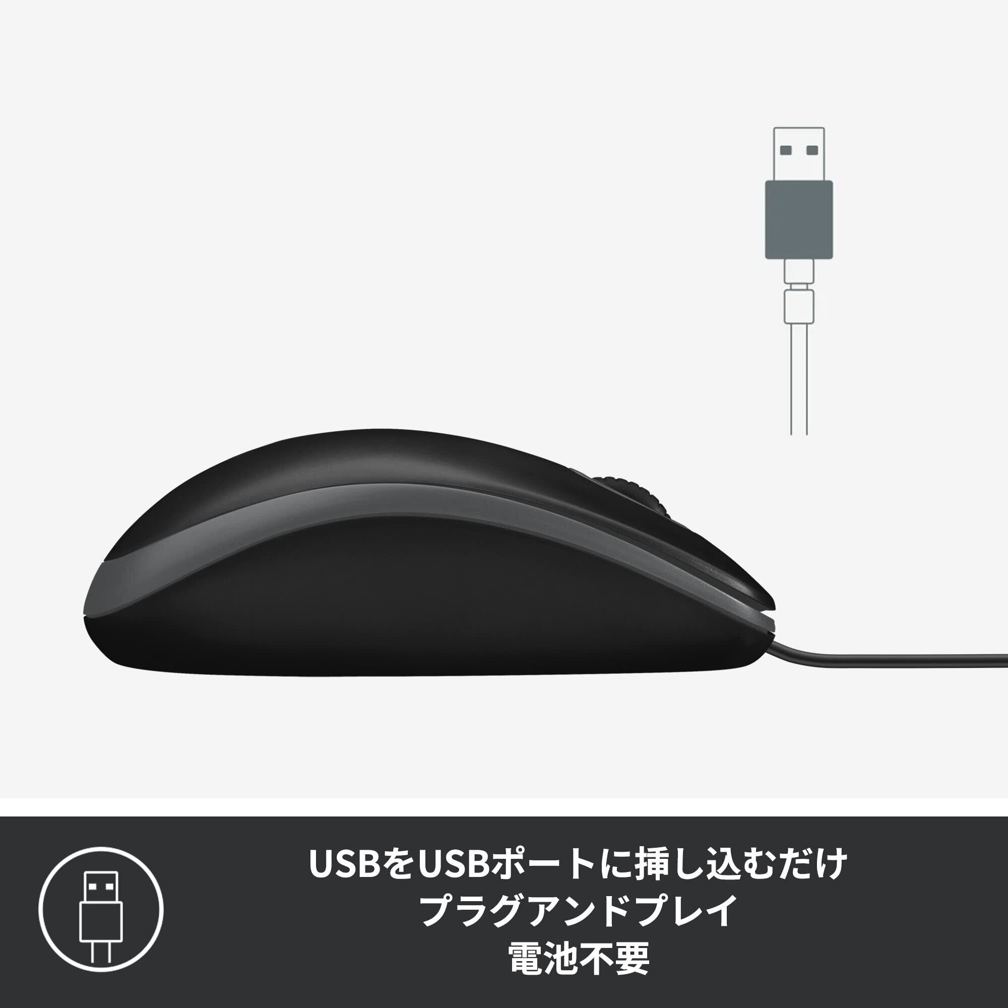 Logicool(ロジクール) 有線 マウス M100nBK 左右対称型 USB 簡単接続 有線マウス M100 ブラック 国内正規品