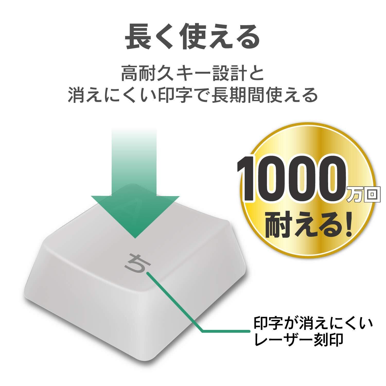 ■最大1000万回のキーストロークに耐える丈夫なキー設計で、長期間に渡って使用可能です。