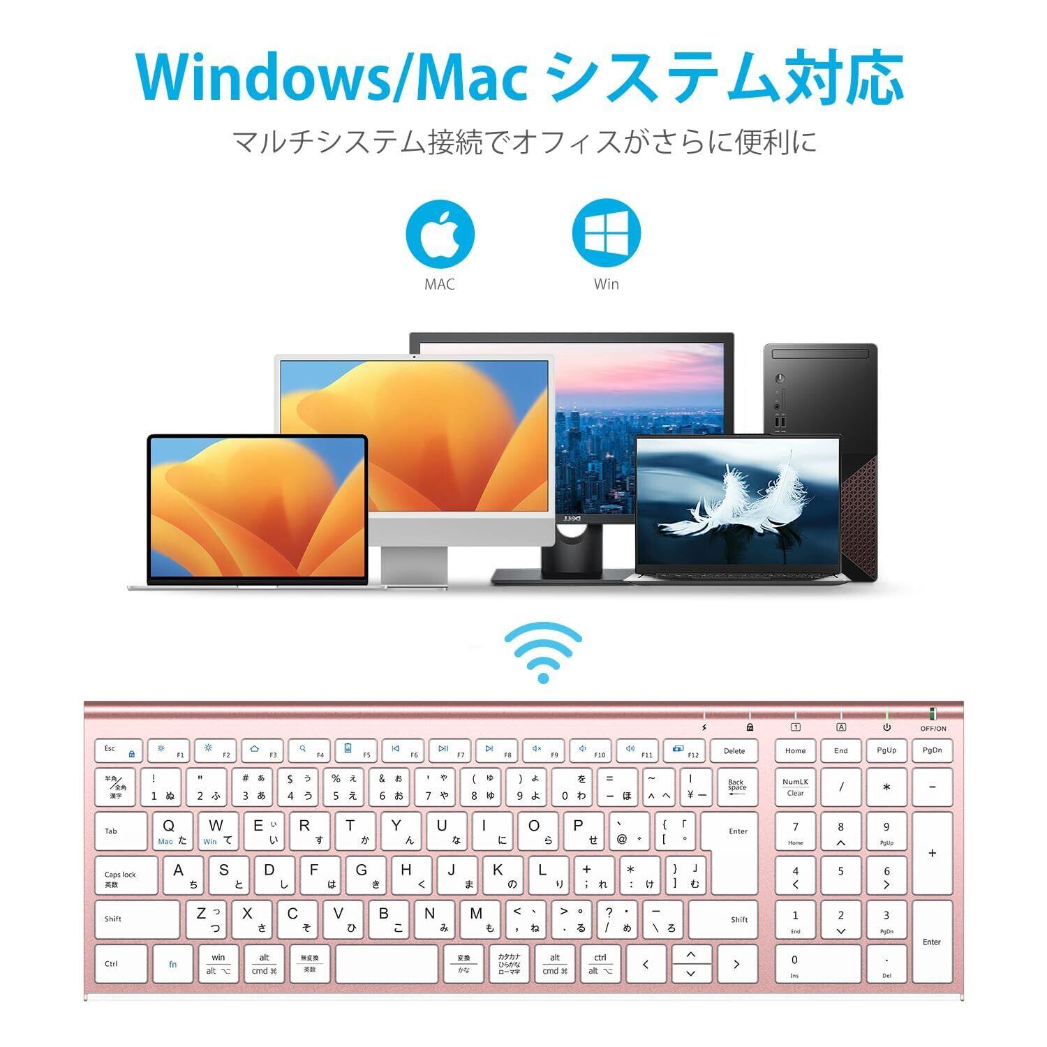iClever キーボード ワイヤレス キーボード マウスセット 日本語配列 静音 超薄型 無線 2.4G キーボード・マウスセット USB接続 キーボードType-C充電式 フルサイズ テンキー付き マウス3段階DPI パソコン PC多機能対応 Windows/Mac対応 IC-BK22Combo (ローズピンク)