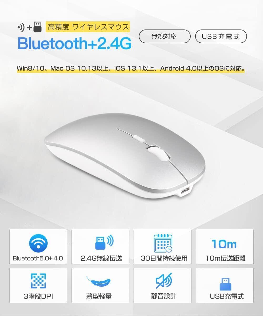 【キーボードとBluetooth&2.4GHzマウスのセット&マルチペアリング機能搭載】パソコンやスマートフォンなど、Bluetoothを内蔵した機器とレシーバーなしで接続できます。 マウスは2.4GHzワイヤレステクノロジーを採用し、ドライバーのダウンロードや設定が不要で、PCにUSBレシバーを接続すればすぐに使えます。キーボードはパソコンやタブレット、スマートフォンなど、最大3台までのデバイスをペアリング可能です。 ワンタッチで使用機器を切り替えることができるマルチペアリング機能付きです。