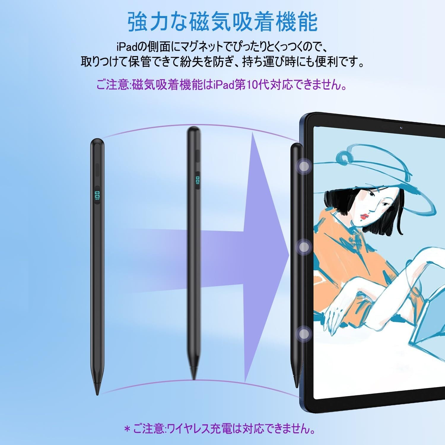 iPadペンシル【交換用ペン先5本付き】USB-C急速充電タッチペン 磁気吸着 iPad6-11(A16)世代,Mini5-7(A17Pro)世代,Air/M3/M2/11&13インチ,iPad Pro/M4/13&12.9&11インチ対応スタイラスペン (ブラック)