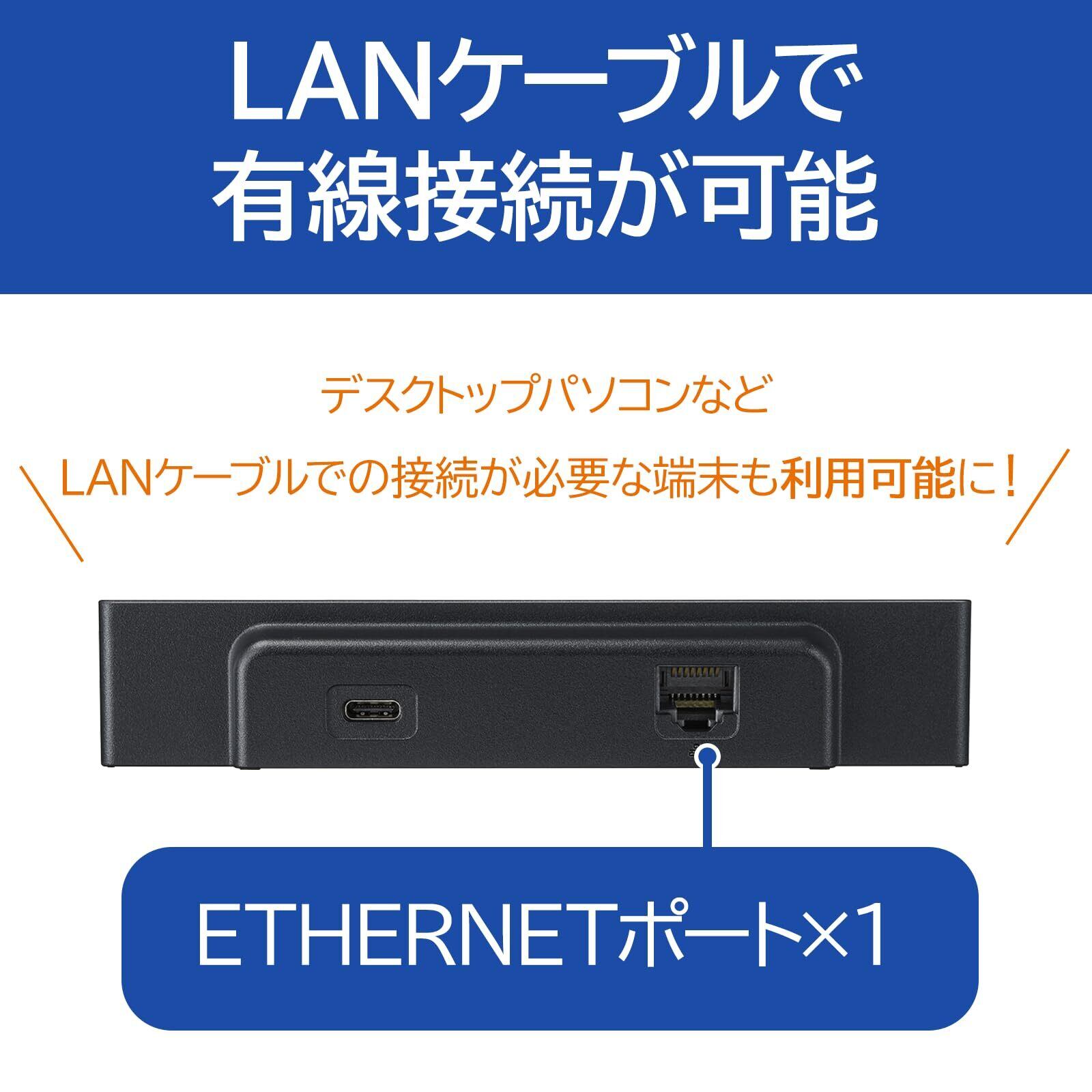 【有線接続で通信可能】ETHERNETポートが1つ搭載されているので、MR10LN本体と組み合わせることで有線LANの利用が可能