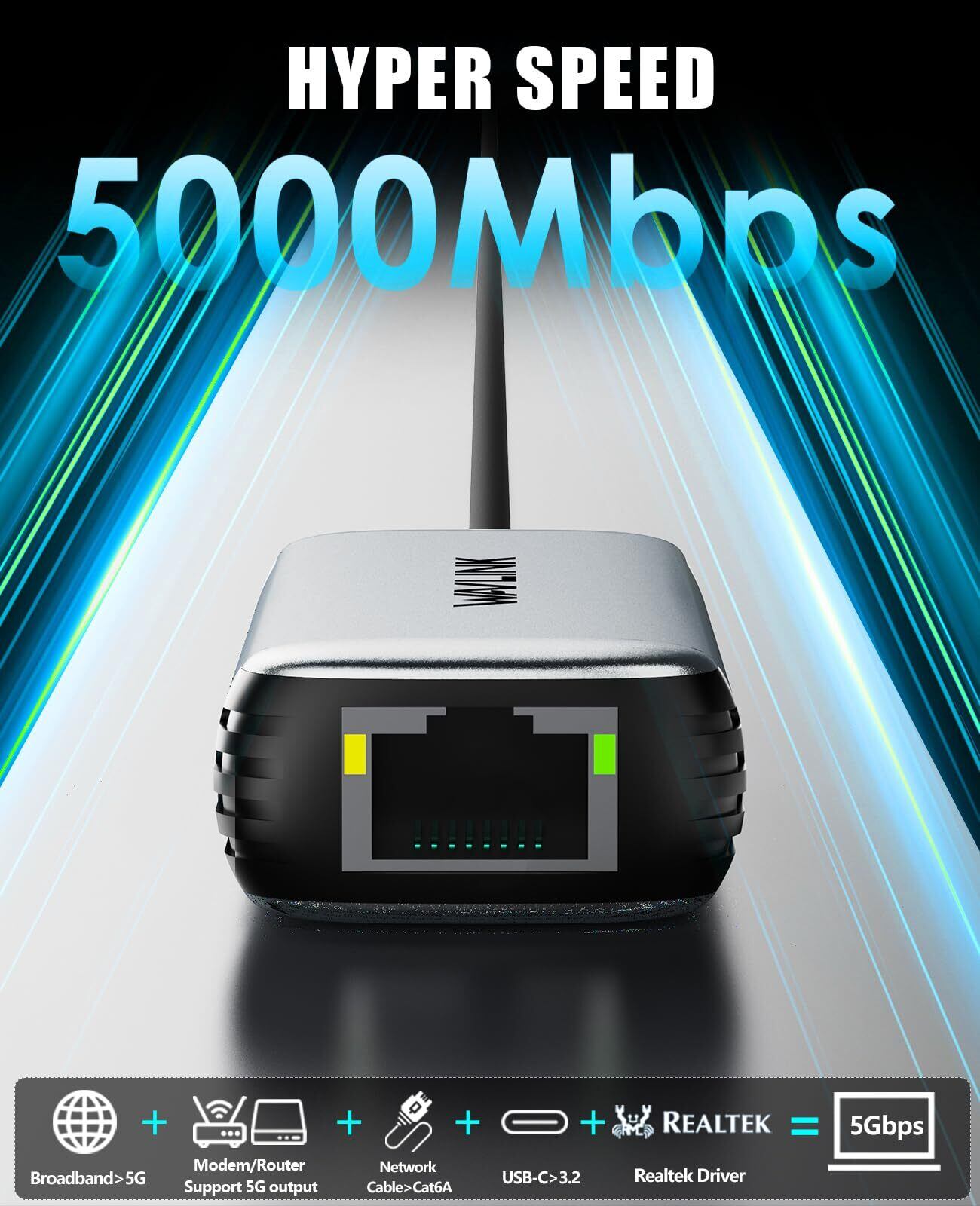 5Gの速度に必要 - 1. ブロードバンドの速度は5Gを超える必要があります。2. 3. モデム/ルーターは5Gネットワーク出力をサポートしている必要があります。 イーサネットケーブルはCAT6A以上のグレードである必要があります。 USB 3.2以上のノートパソコンポートに接続します。 ドライバーソフトウェアをダウンロードしてインストールしてください!