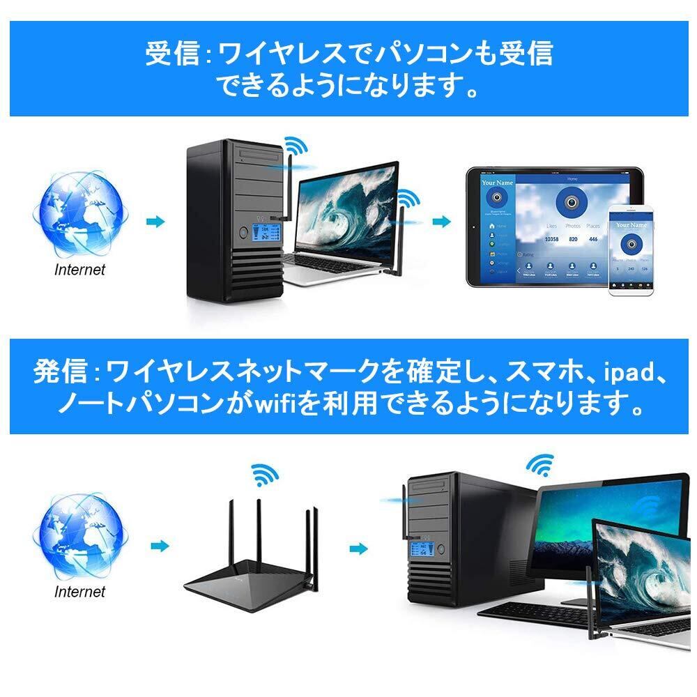 【5dBiアンテナ・広範囲】360度全方位5dBi高増幅アンテナは高RFパワーをします。従来2dBi / 3dBi アンテナ型WIFI子機より電波を強化し、壁などの障害を越えて電波をもっと広い範囲に拡張できます。5dBiアンテナは、信号が弱い場合でも接続するのに役立ちます.最適な信号を拾う必要がある場所に簡単に設置できます。