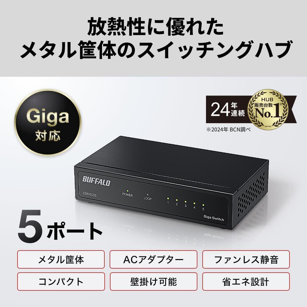 バッファロー 5ポート Giga対応 スイッチングハブ LANハブ 1000Mbps メタル筐体 壁掛け ACアダプター 日本メーカー ブラック LSW-5GSE/NBK