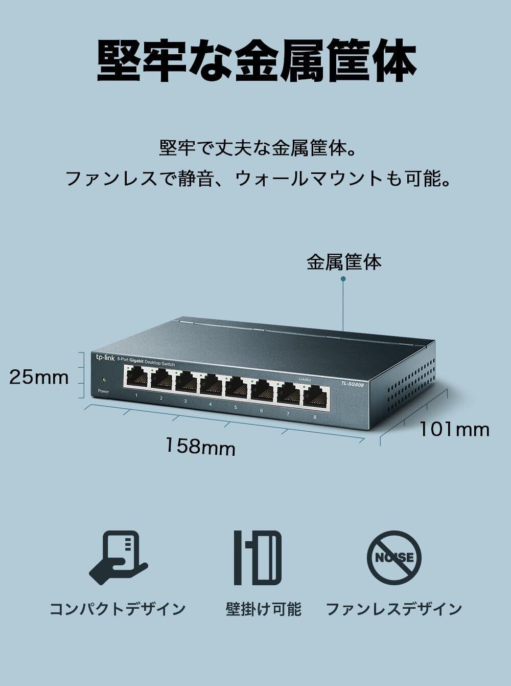 TP-Link 8ポート スイッチングハブ 10/100/1000Mbps ギガビット 金属筺体 設定不要 TL-SG608
