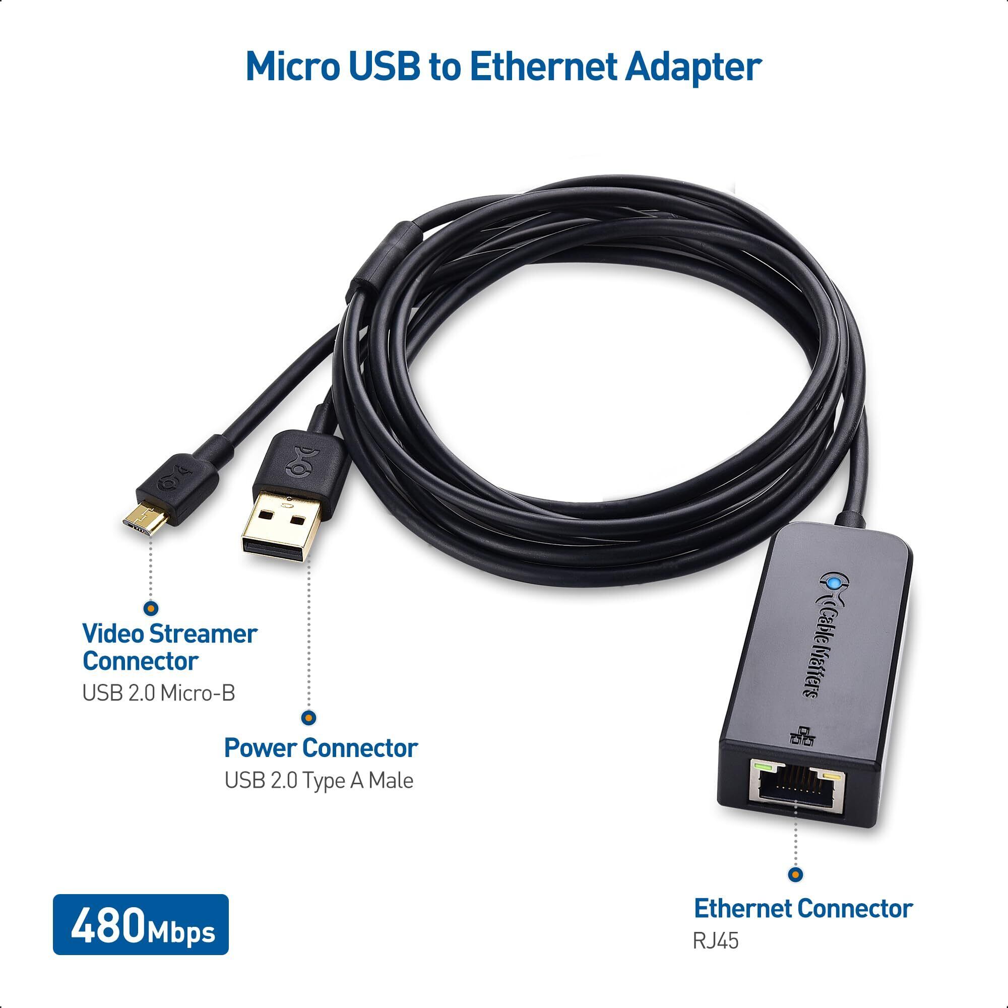 Cable Matters 有線 LAN アダプタ Micro USB LAN変換アダプタ Fire TV Stick LAN変換アダプタ USB2.0 Micro-B 有線LANアダプタ 480Mbps ChromecastとGoogle Home Mini などビデオストリーミング用 Roku Expressに非対応