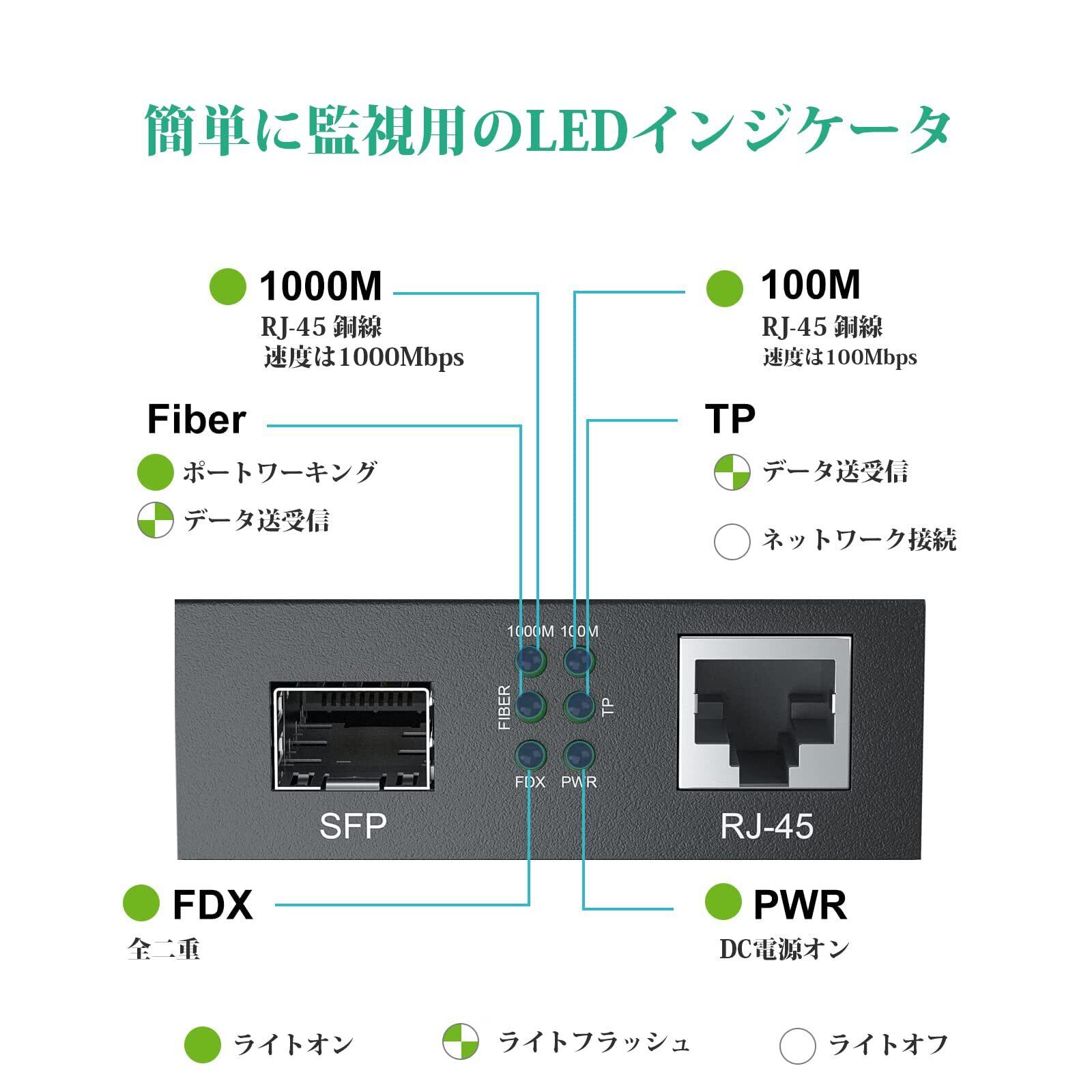 ipolex 光回線 メディアコンバーター デュプレックスシングルモード SFPモジュール付属(1310nm/20km)10/100/1000Base-Tx から 1000Base-LX ギガビット ファイバー メディアコンバーター