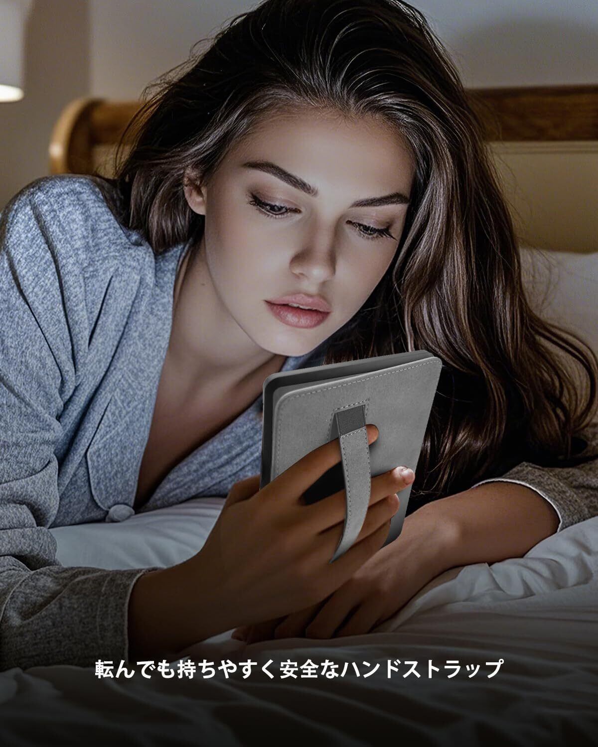 【便利なハンドストラップ付】本Kindle Colorsoft カバー/Kindle Paperwhite ケース 12世代は伸縮性あるハンドストラップを付き、片手でKindle Colorsoft/Kindle Paperwhite 2024の保持が容易になり立っても寝転がってもどんな姿勢でも読みやすくなり、より簡単で快適です。