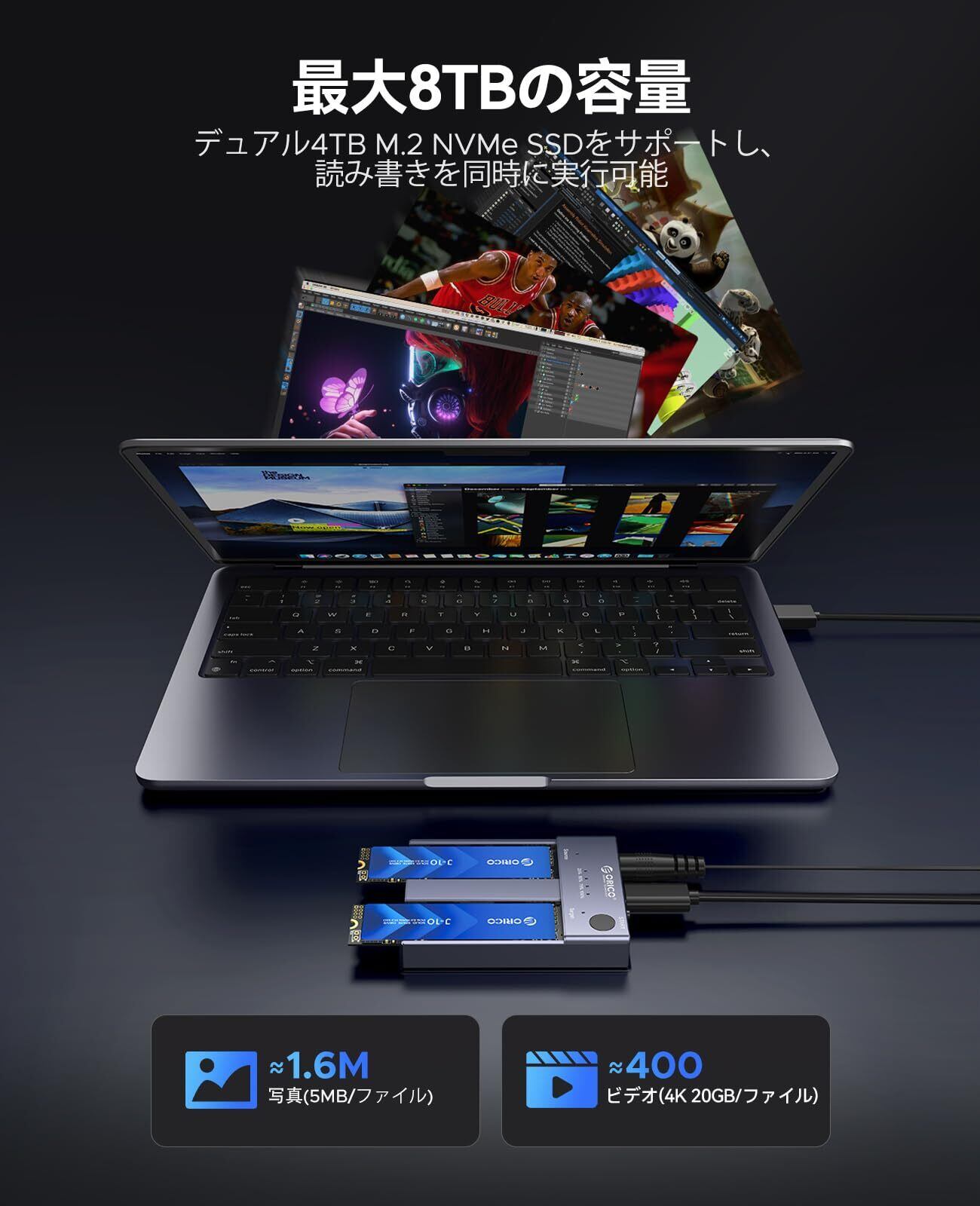 【2台SSD対応】シングルベイは4TBまでのSSDを搭載可能、合計8TB大容量対応。高品質マスターチップ採用、安定にデータ転送します。Mac OS、Windows 7/8/10、Linuxのシステムを対応します。