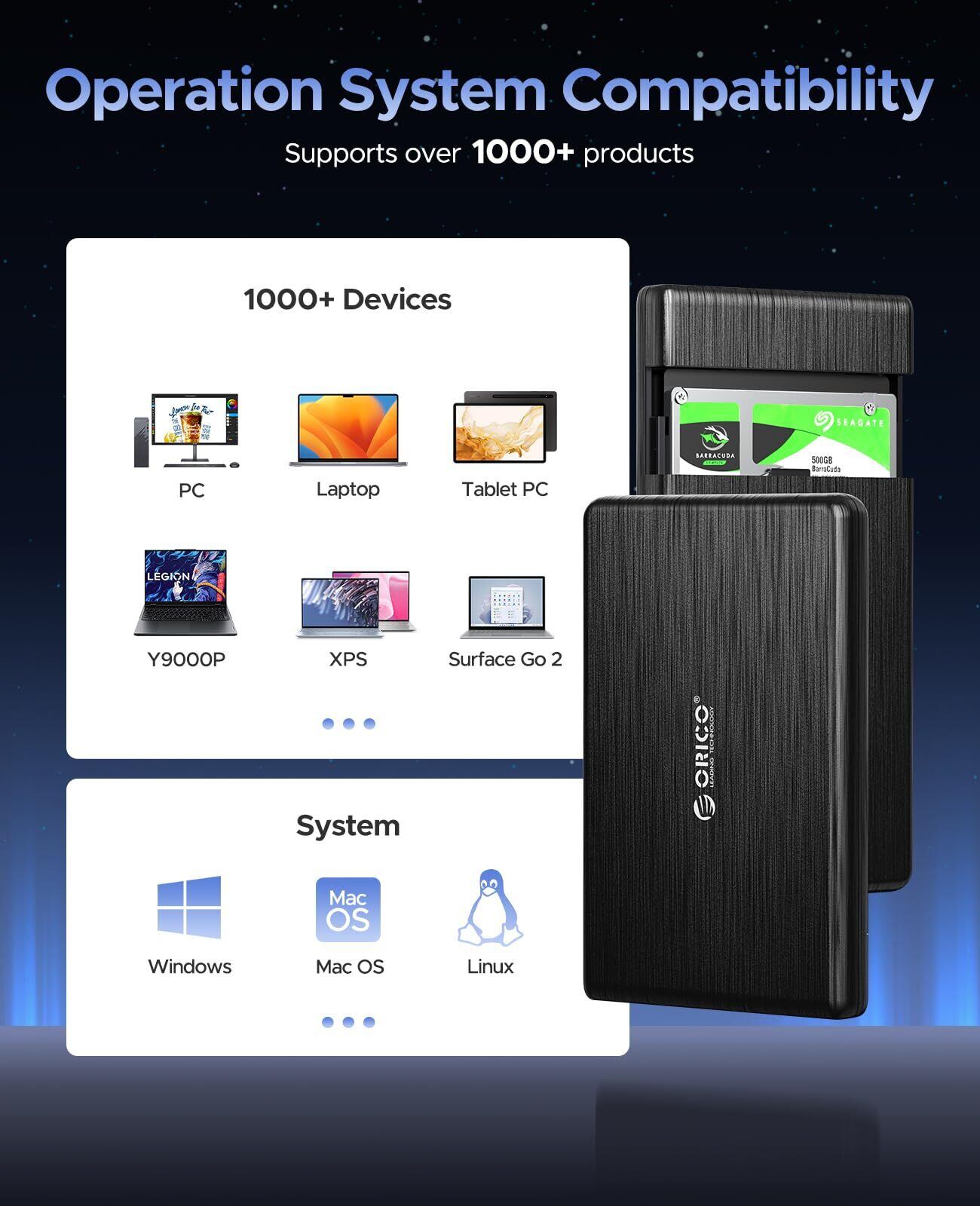 ORICO 2.5インチ HDD / SSD ケース USB3.0接続 SATA 3.0 ハードディスクケース UASP対応 4TBまで 9.5mm/7mm厚両対応 工具不要 指紋防ぐ 2189U3