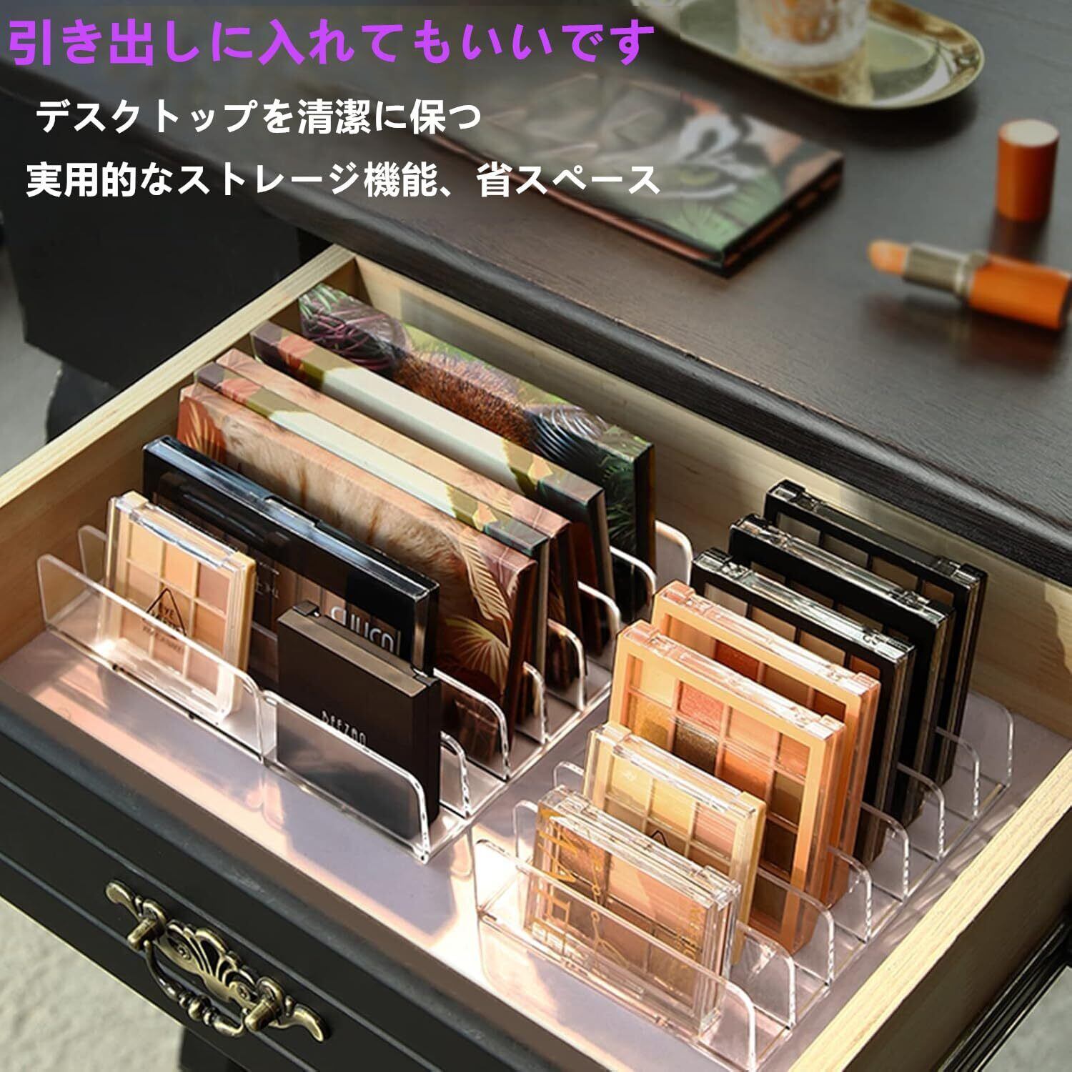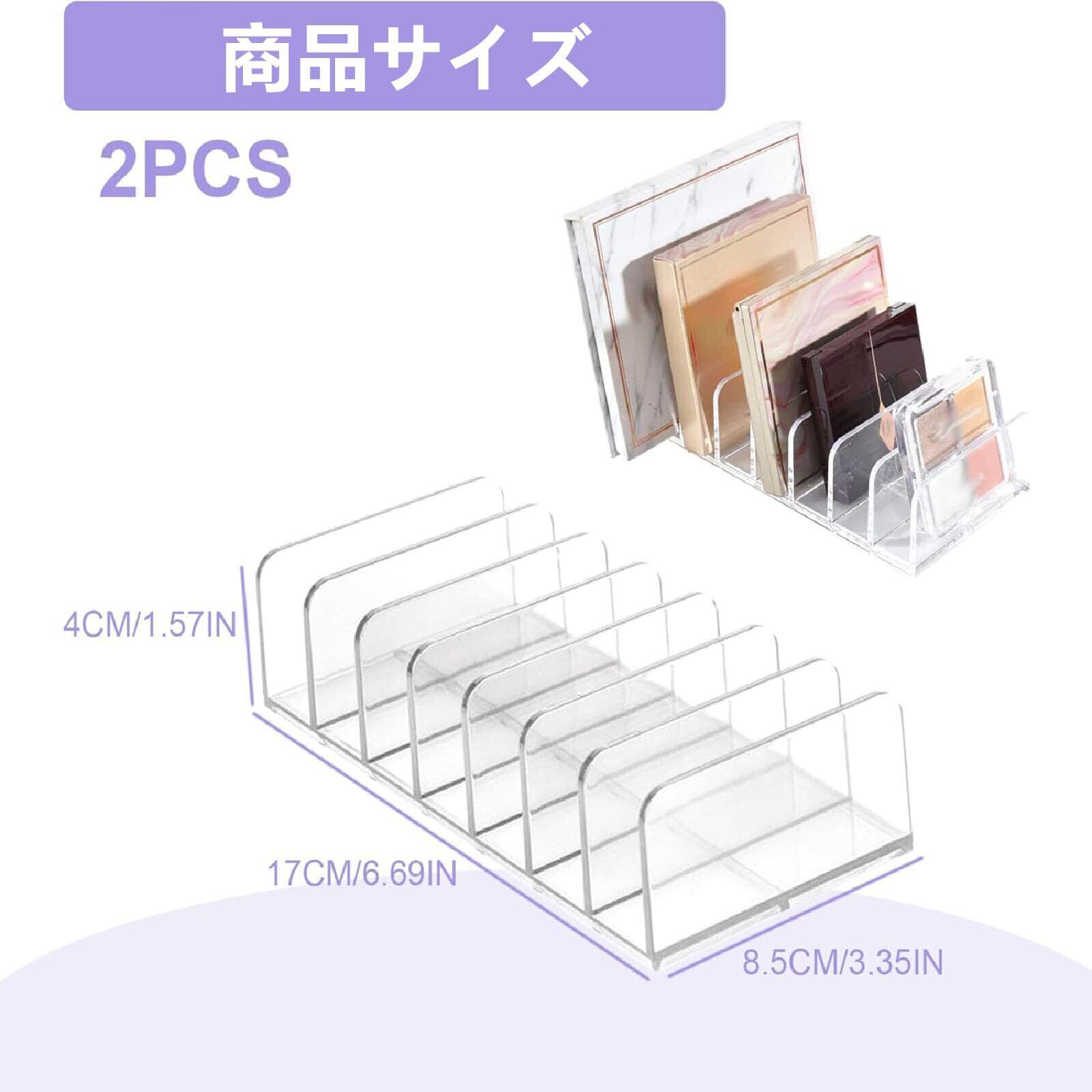アイシャドウ 収納 7仕切り 2個セット コスメ収納 アクリル 仕切りスタンド 引き出し 仕切り板 卓上 メイクボックス メイク収納ケース 透明 化粧収納ボックス 小物入れ クリアケース (8.5cm*17cm)