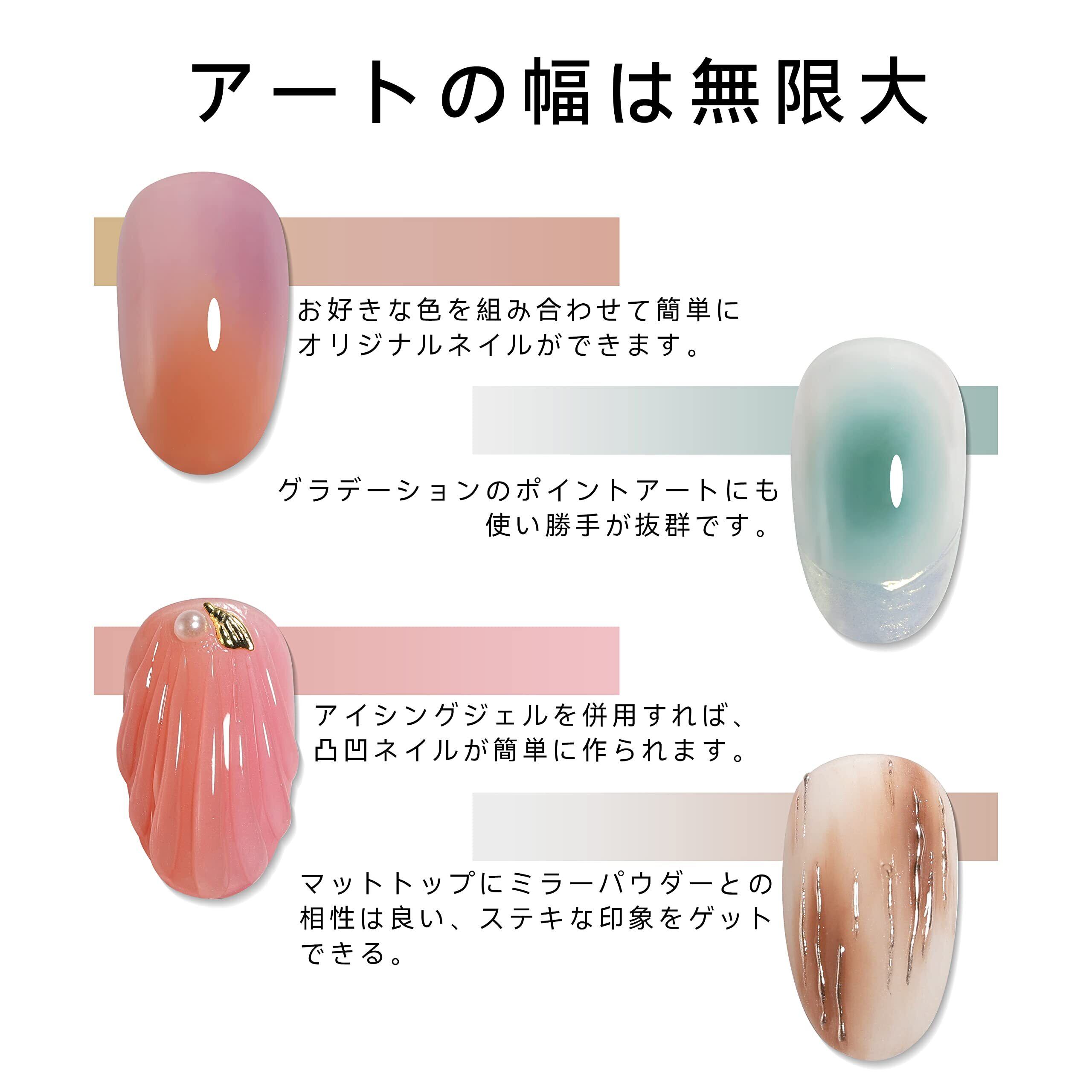 【粉が舞わず】飛び散りにくいタイプグラデーションアートはもちろん、ポイントアートにも使い勝手が抜群で、自分だけのオリジナルカラーが作れます。