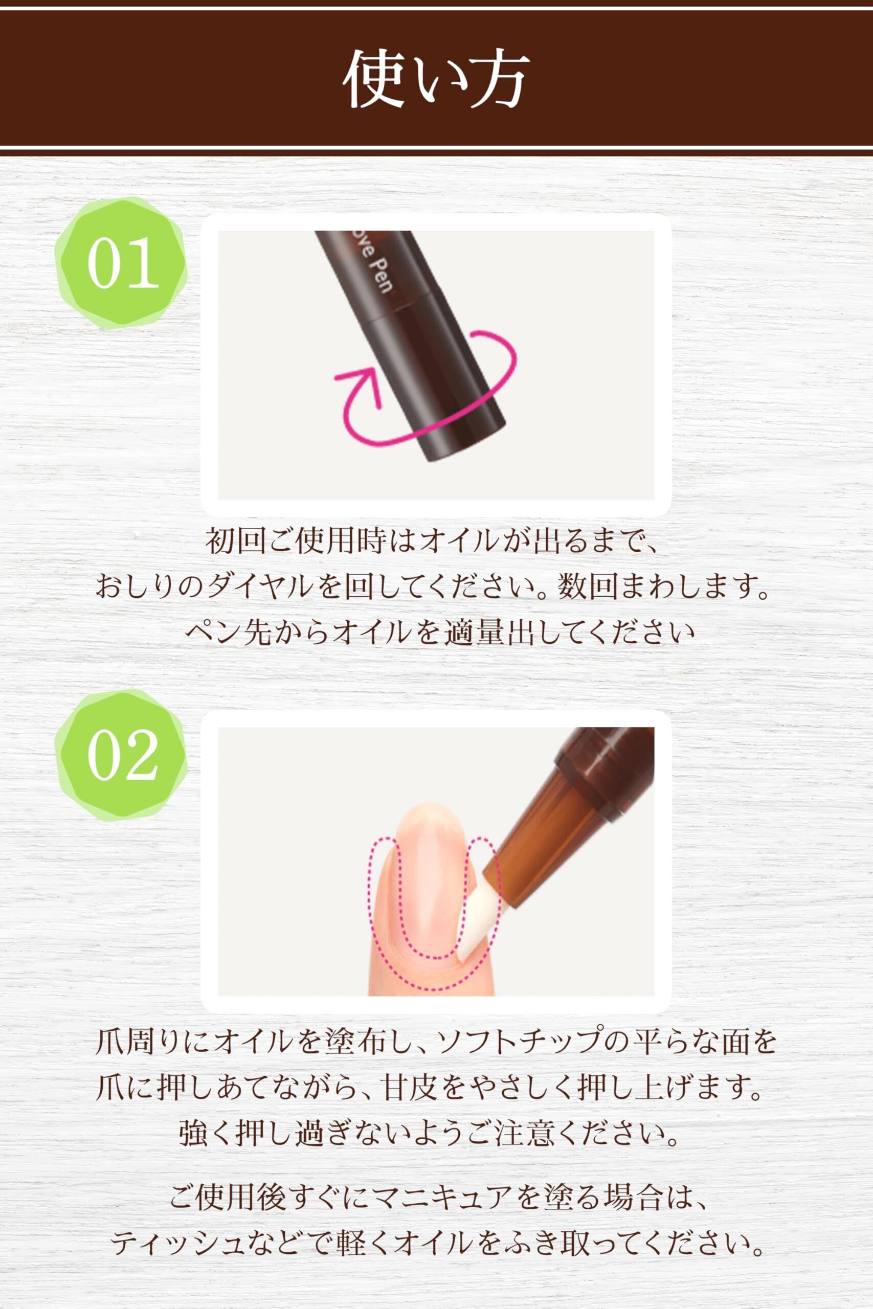 ※ご使用直後にマニキュアを塗る場合は、ティッシュ等で軽くオイルをふき取ってください。