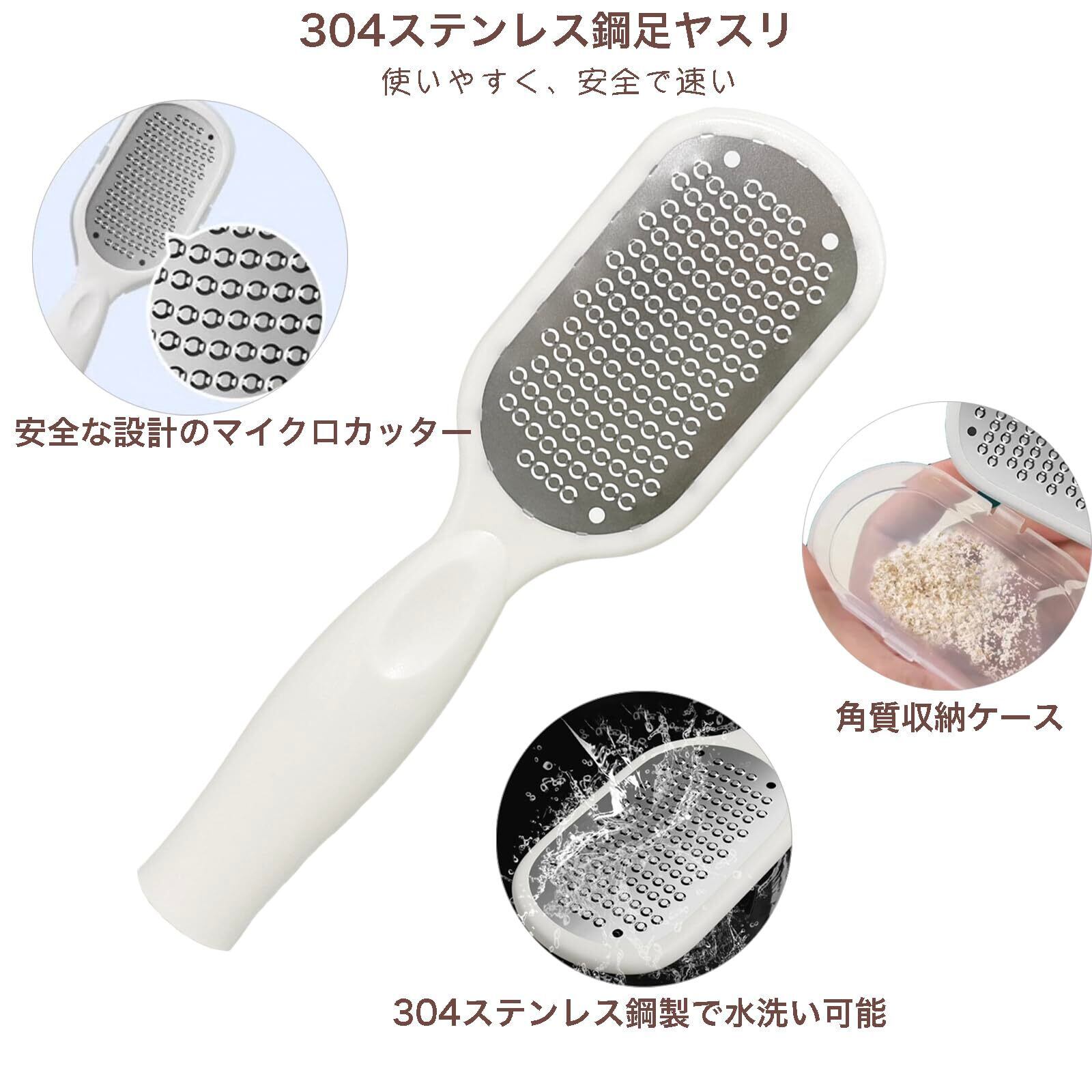 Tribetter 角質取り かかとやすり 甘皮ケアセット 魚の目 カッター フットケア 足ヤスリ 丸洗いOK 乾湿足用【替刃10枚付き】(ホワイト)
