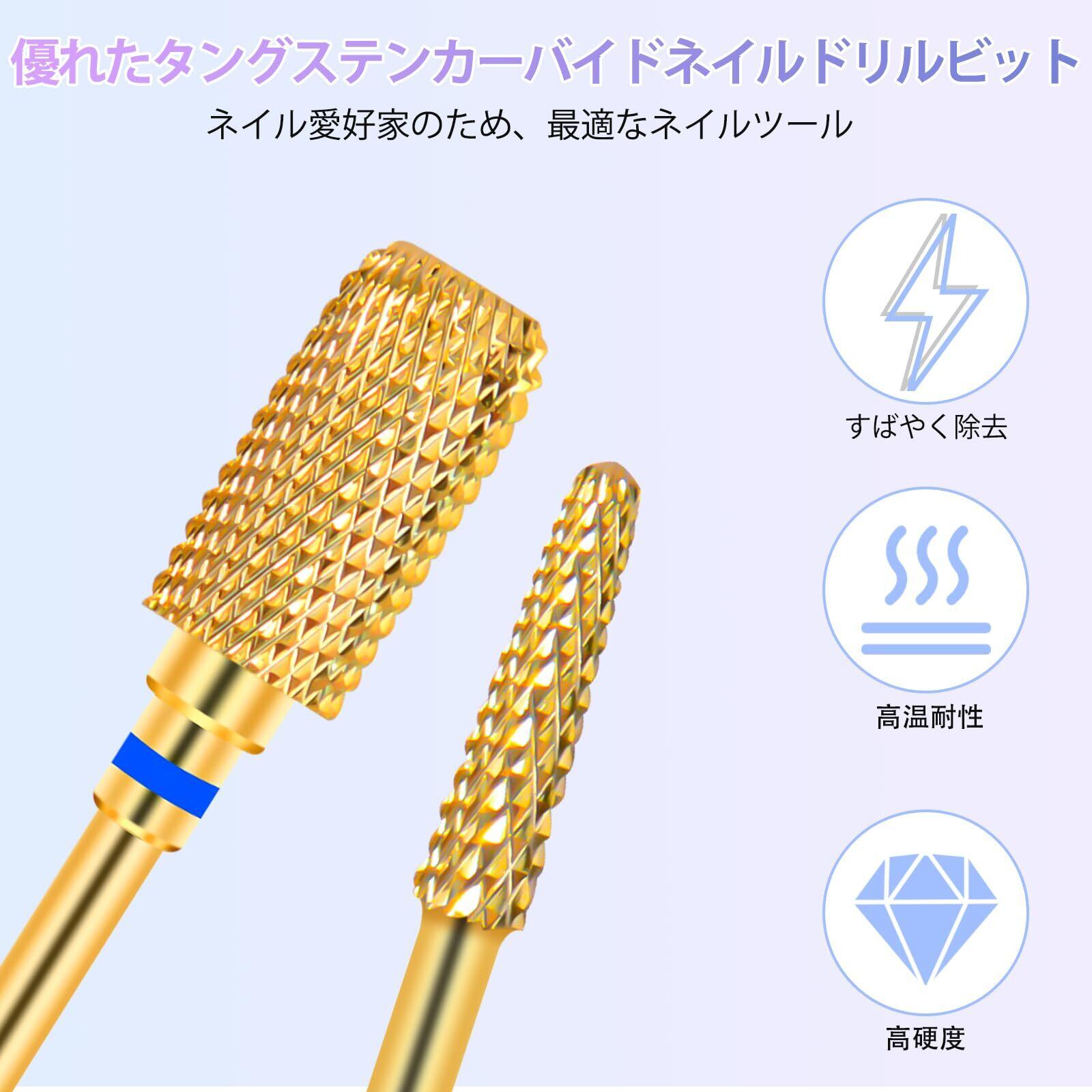 CGBE ネイルビット 2個 ネイルドリルビット 2.35mm 軸径ゴールドネイルマシン ビット 爪磨き用超硬ネイルドリル キューティクル除去 ジェルのオフ シリンダー + シェード(中)