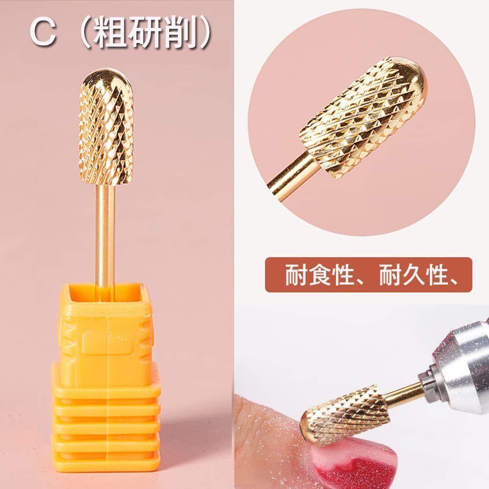 ネイルアート ドリルビット 強力なネイルグラインドヘッドバレル カーバイド ビット 全3サイズ F(微研削)+C(粗研削)+M(中仕上げ)研削ネイル 研磨ヘッド ネイルマシーンアタッチメント アクリルや厚いハードジェルのオフ除去に最適 実用 (ゴールド)