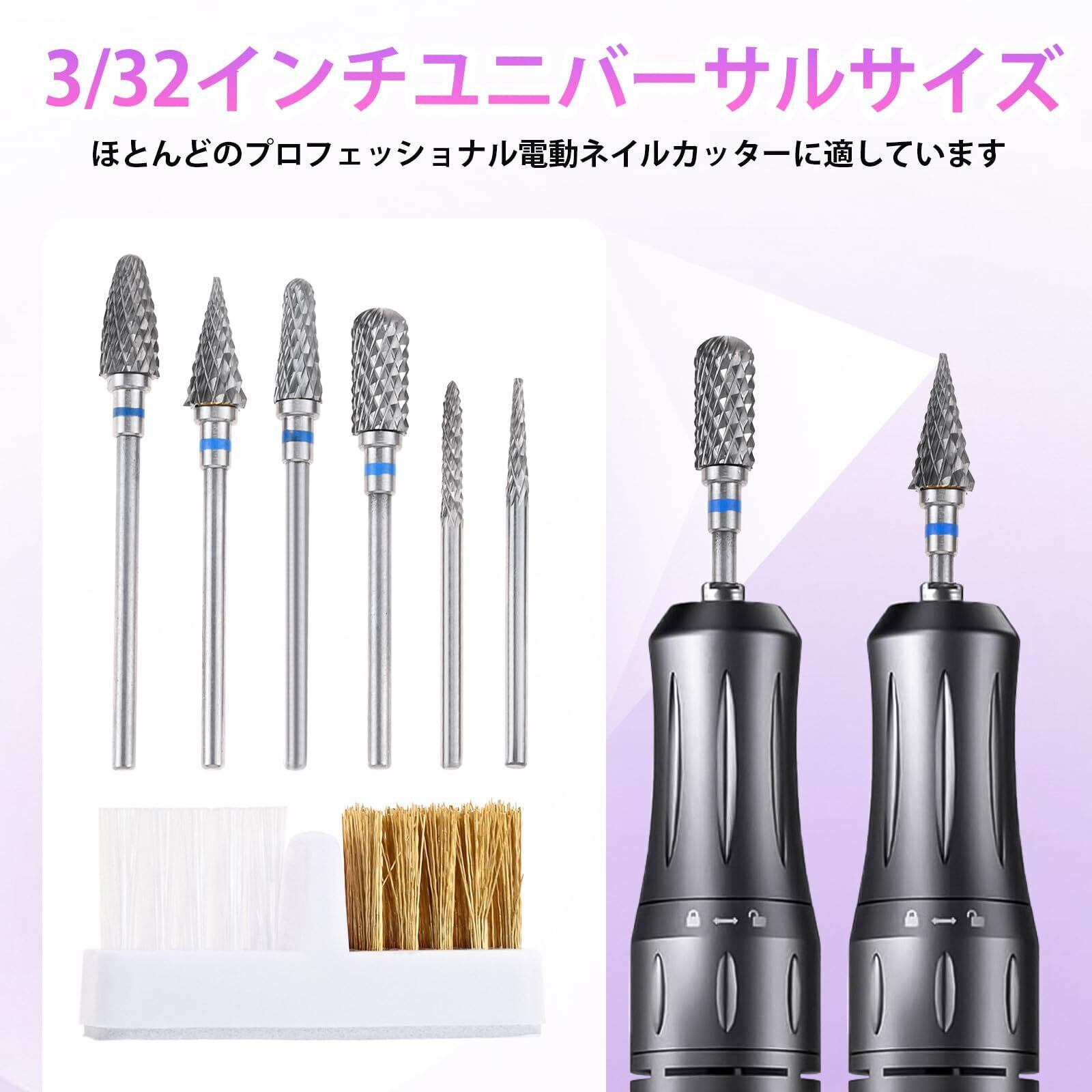 Dophee ネイルビット ネイルドリル 6本 ネイルマシン ビット 2.35mm 軸径 ネイルオフ キューティクル除去 ネイルケアセット 超硬ネイルマシーン用ビット 爪磨き 角質除去 研削ネイル 中粒