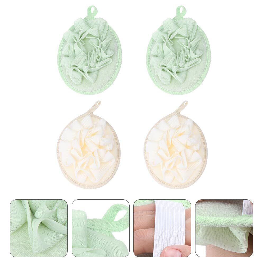 KESYOO スポンジ 泡立てネット シャボンボール ふわふわ 超柔軟 肌に優しい お風呂 バスボール 背中も洗える 女 男 バススポンジ 4個セット(白 緑)